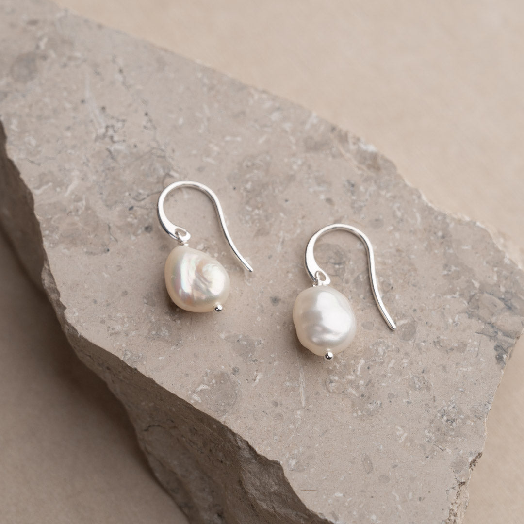Our Noella earrings feature a feminine and classic design, perfect for any occasion. The earrings are crafted with the finest baroque freshwater pearls, each of which is entirely unique. Please note that the size and shape of baroque pearls can vary, which is what makes them unique and beautiful. The pearls are matched to complement each other as best as possible, but they will never be completely identical, as all pearls are unique and created by nature.