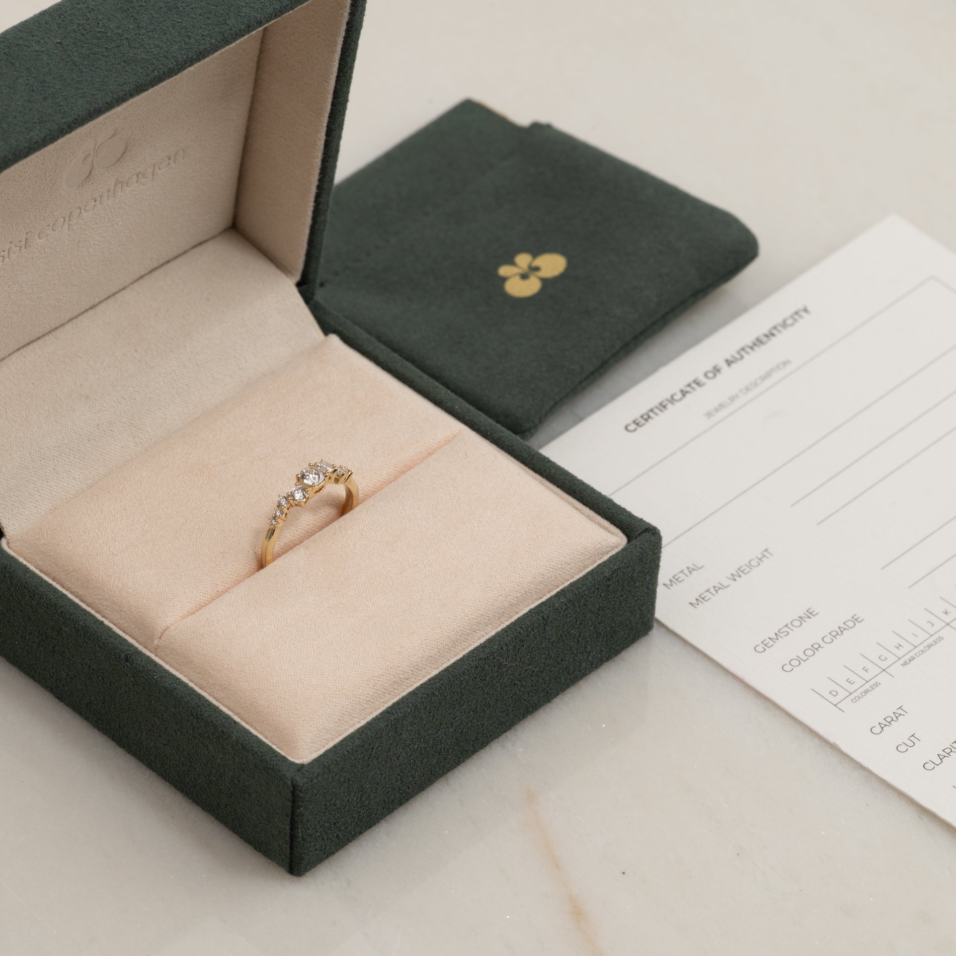 The ring is delivered in our exclusive Diamond Collection box, including a jewelry case, certificate and a travel pouch. The box is also perfect for gifting.