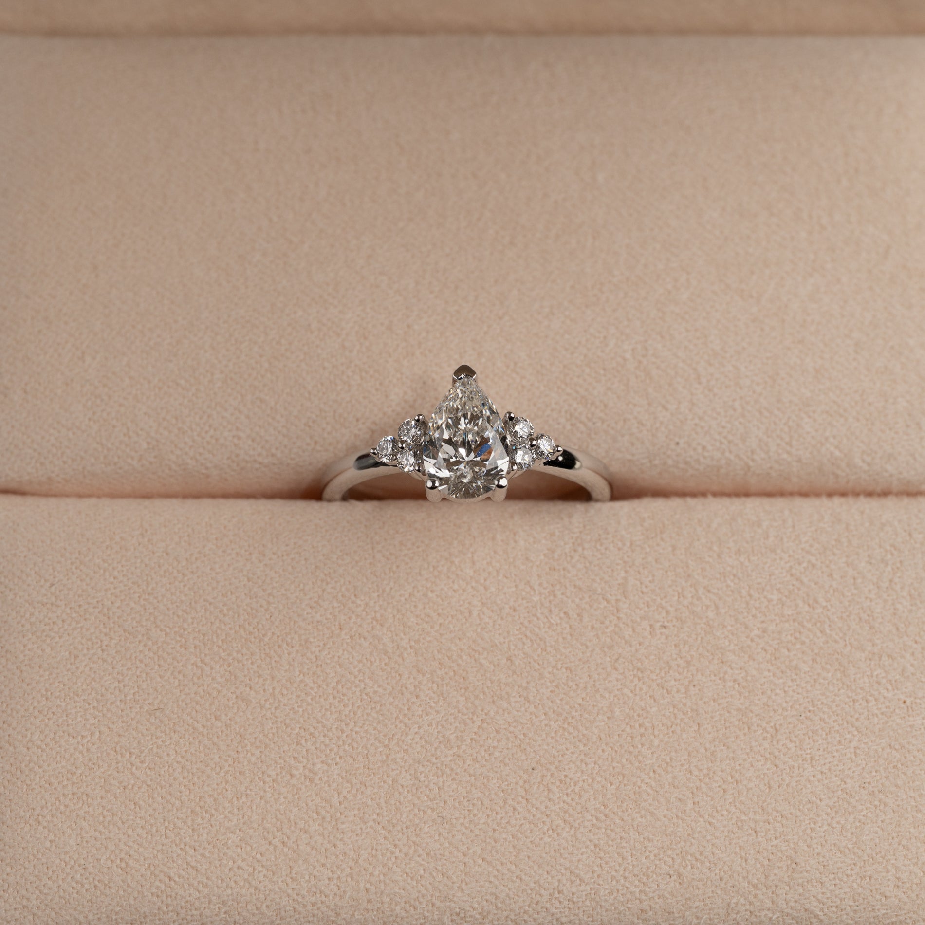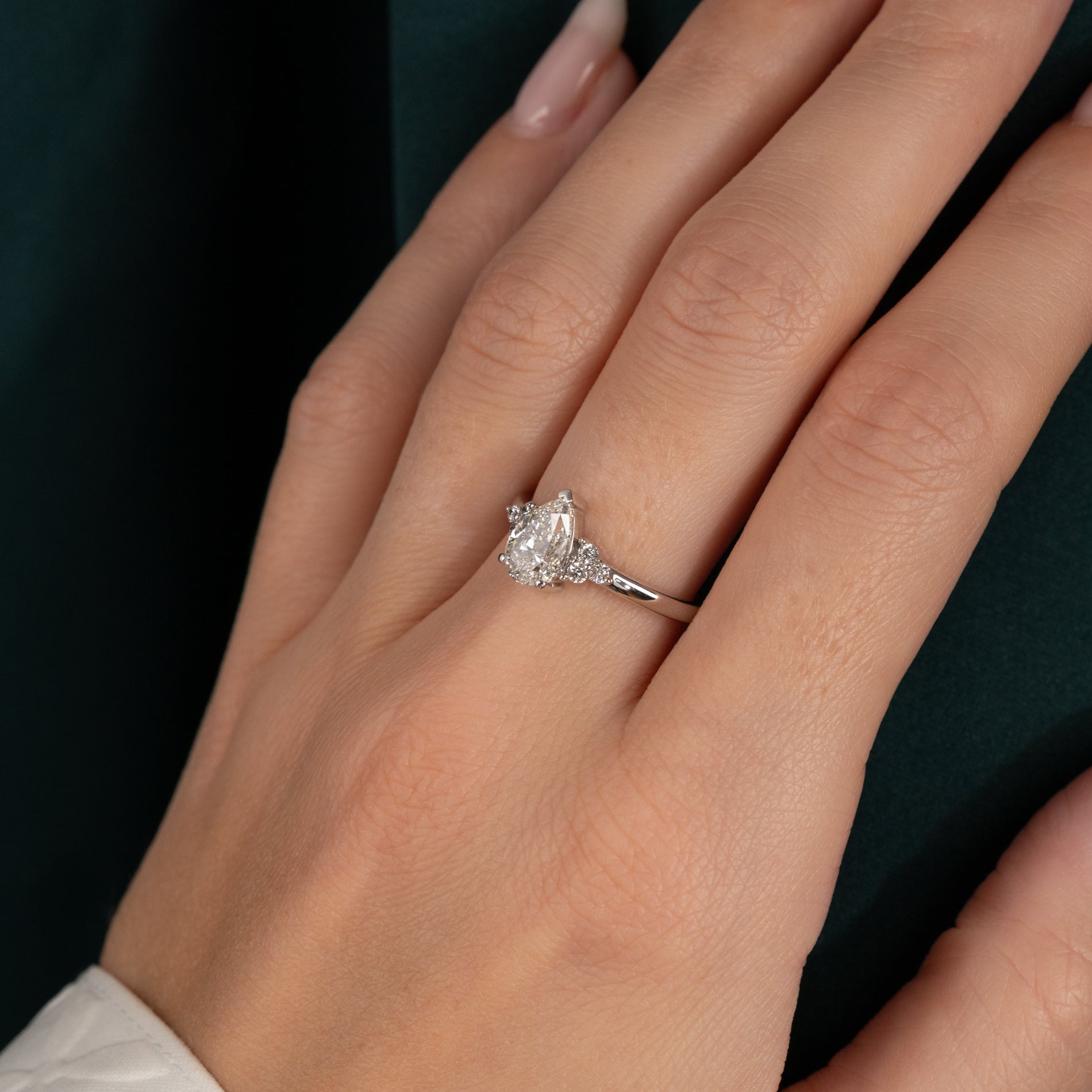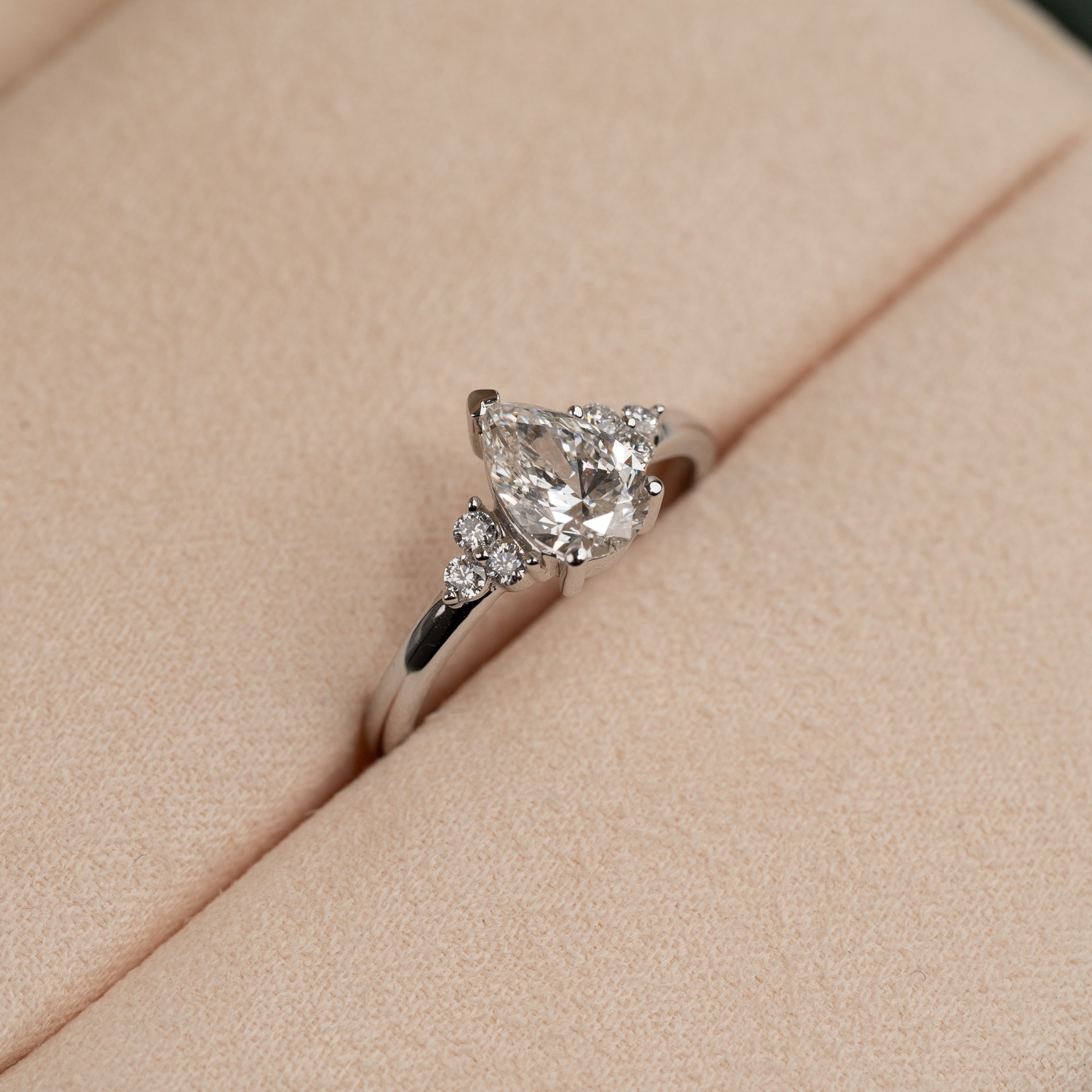 Pear-shaped diamond ring with a 1.0 ct lab-grown diamond and elegant side stones