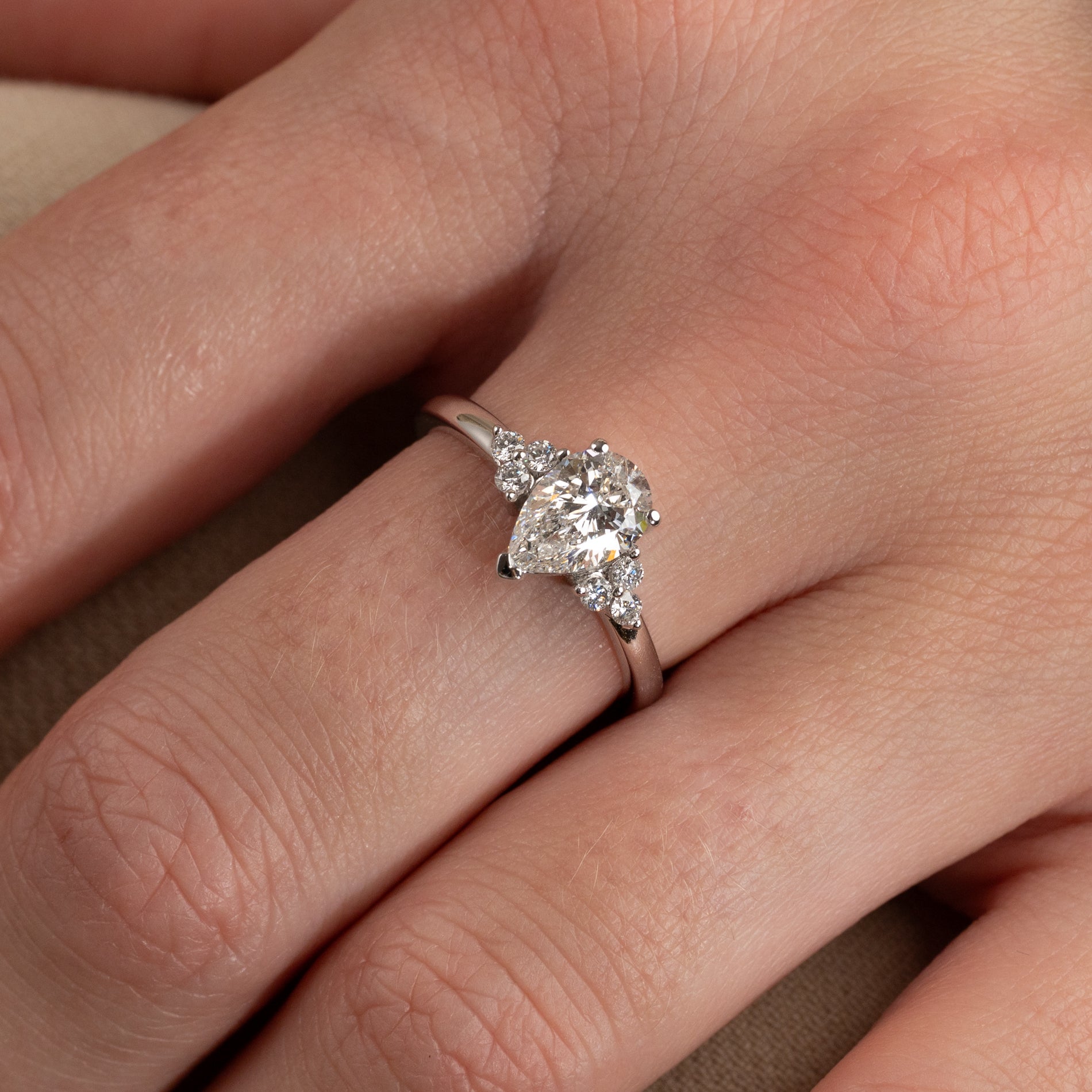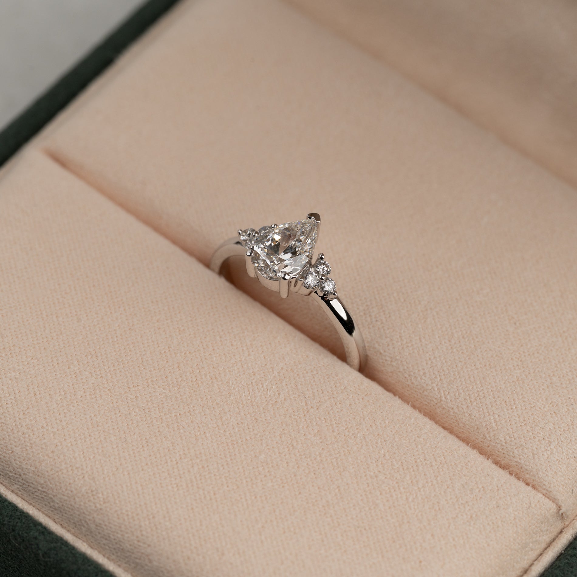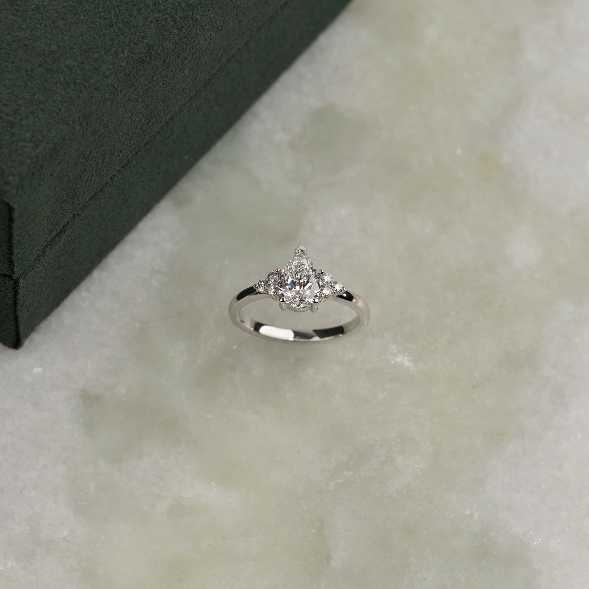 Pear-shaped diamond ring with a 1.0 ct lab-grown diamond and elegant side stones