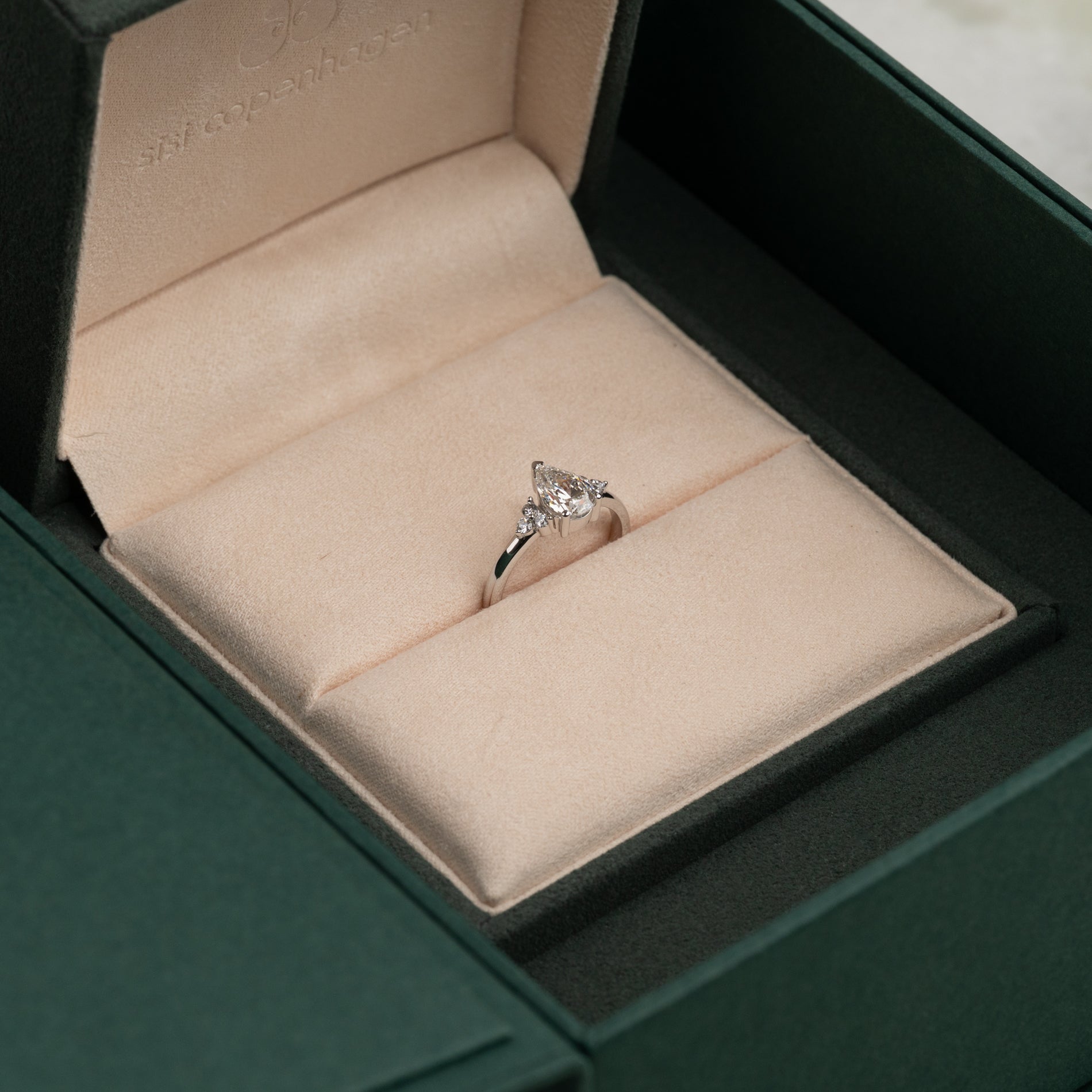 The pear-shaped diamond adds a romantic and elegant touch - perfect for anyone looking for a unique engagement ring or a cocktail ring with personality.
