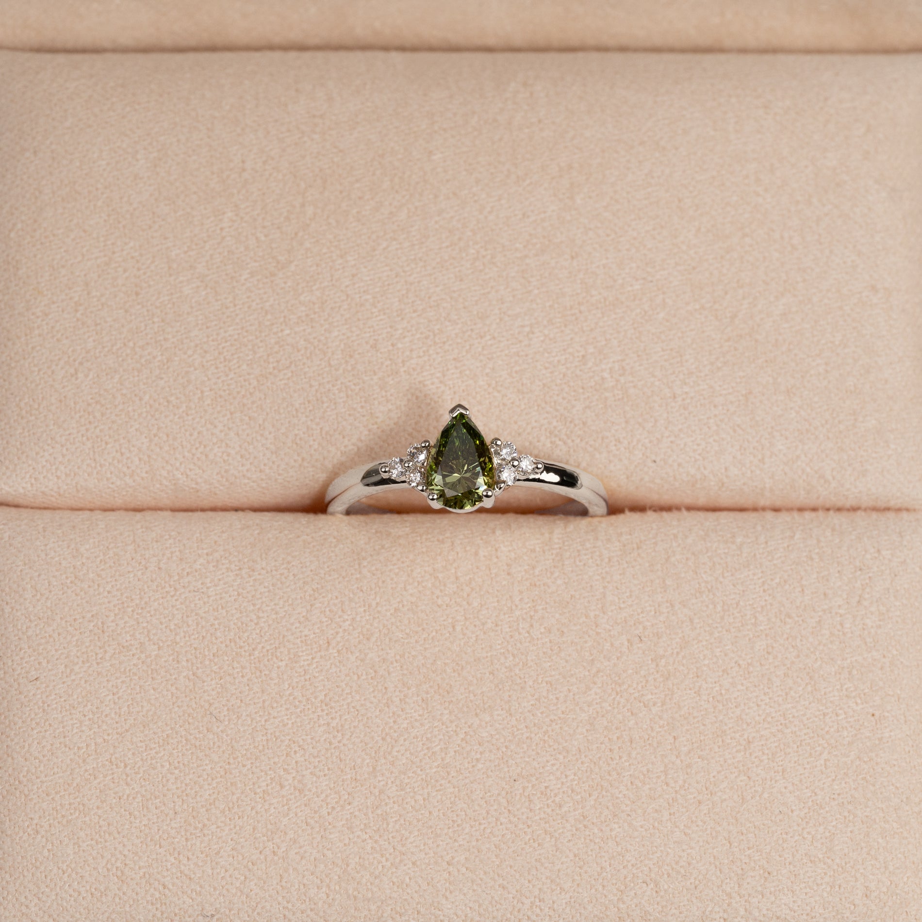 Pear-shaped diamond ring with a 0.6ct. fancy green lab-grown diamond and clear side stones