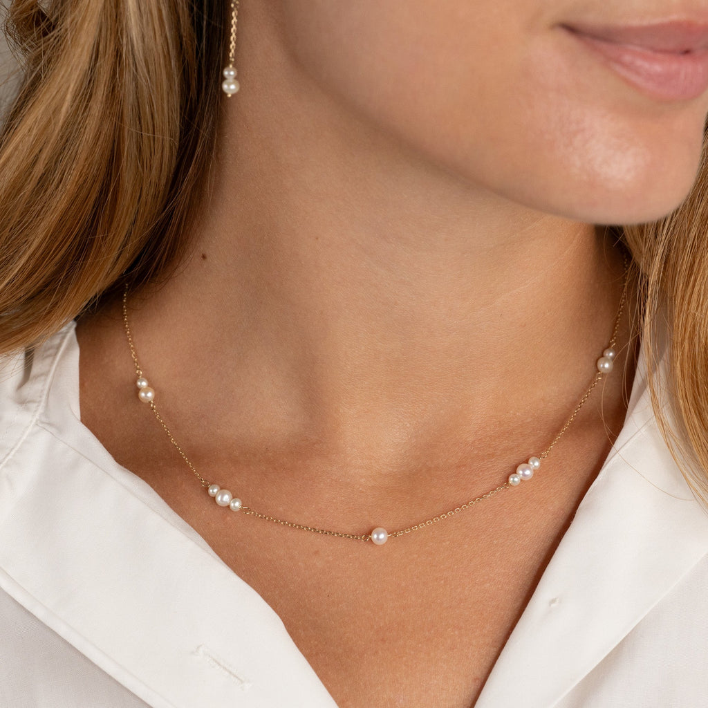 The chain is feminine and light in expression, making it suitable for everyday wear as well as adding a touch of elegance to a festive outfit with classic pearls in a more modern design.