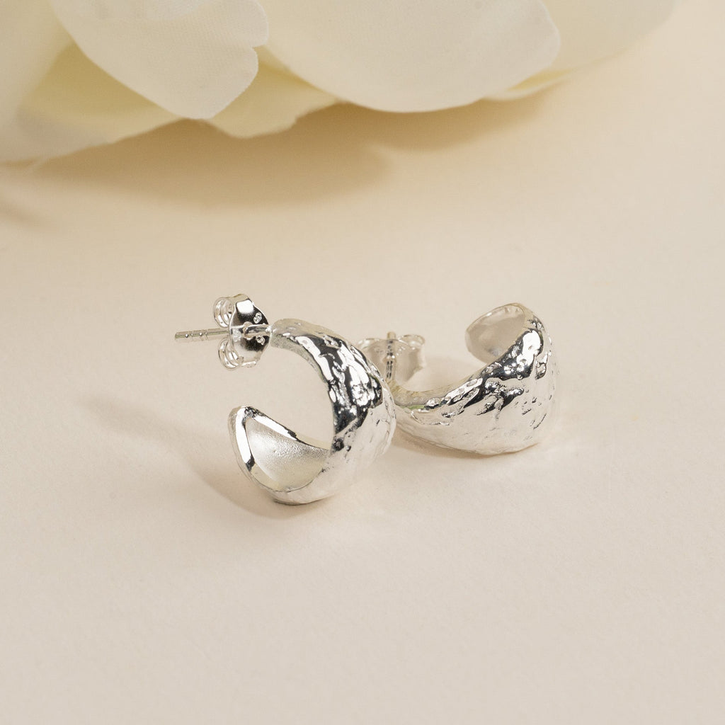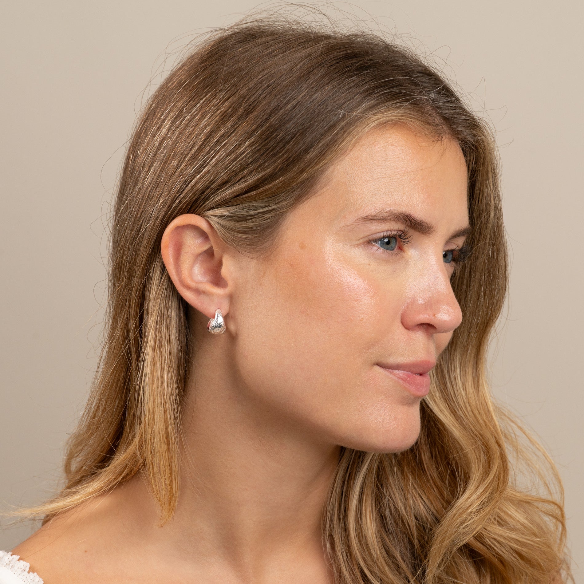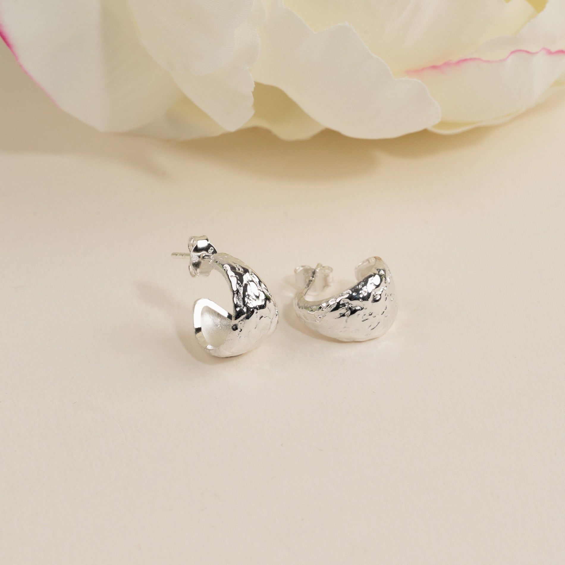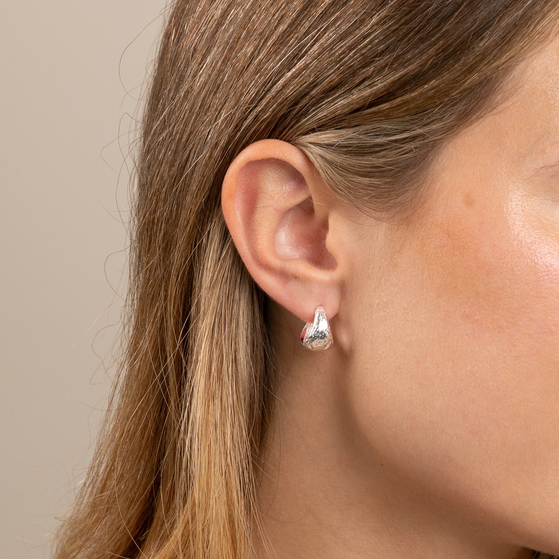 Earrings made from 100% recycled 925 sterling silver. The surface has a raw, beautiful texture that makes them stand out.