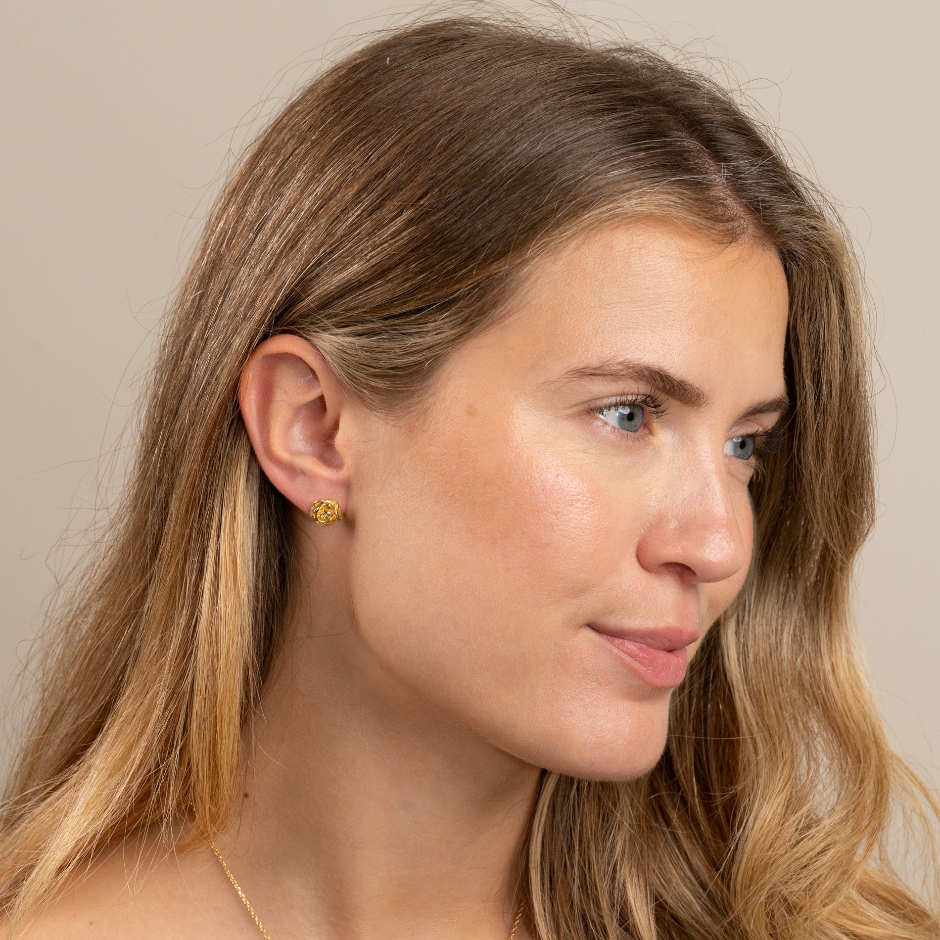 The Rosie studs in medium measure 10.5 mm in width and 4.5 mm in height, and they close securely with butterfly backs.