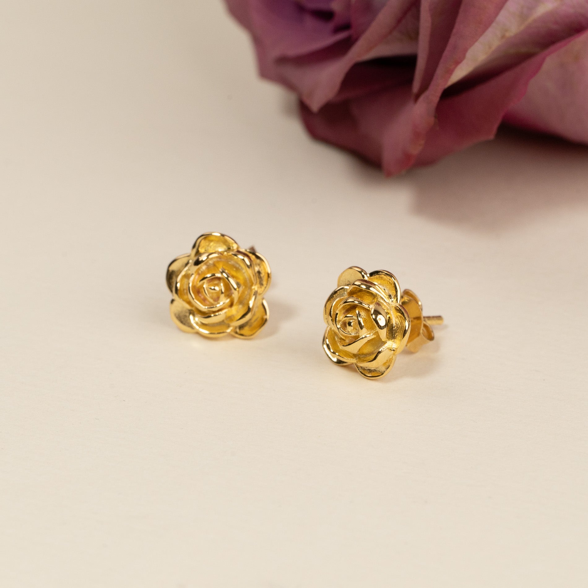 Earrings in 100% recycled 18 karat gold-plated sterling silver, beautifully shaped like roses with soft, sculptural details.