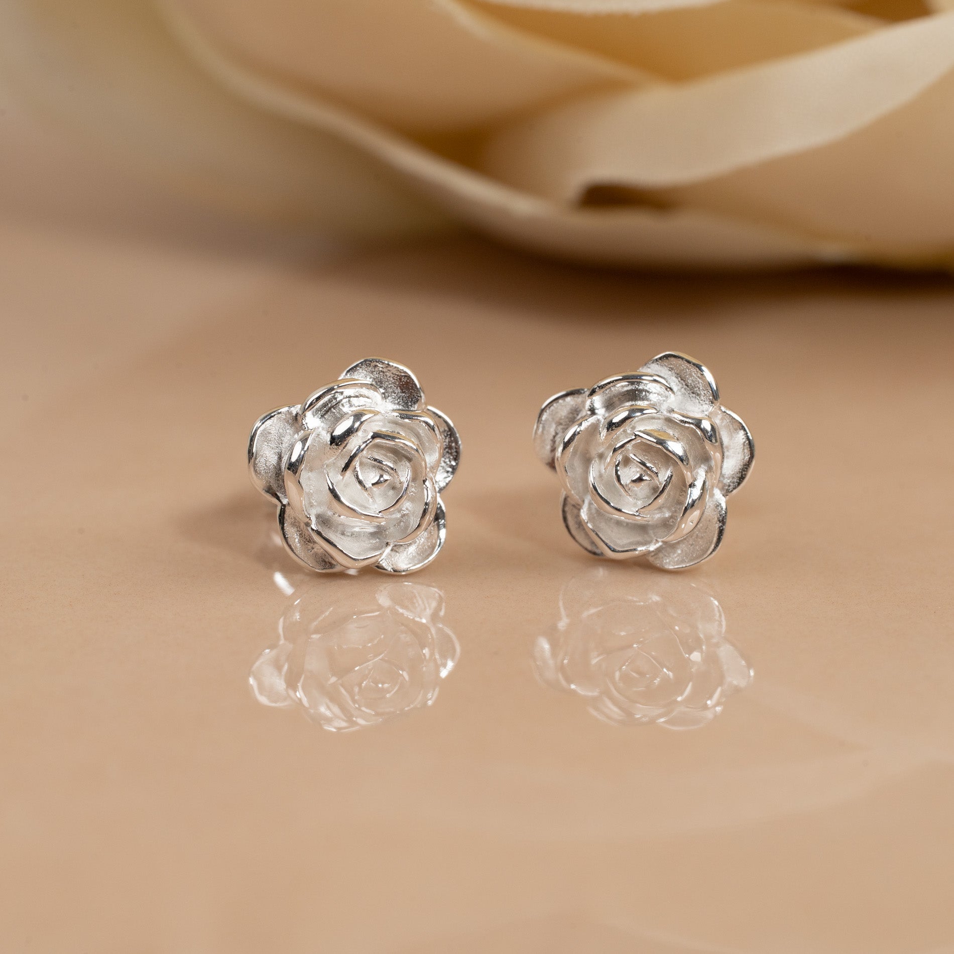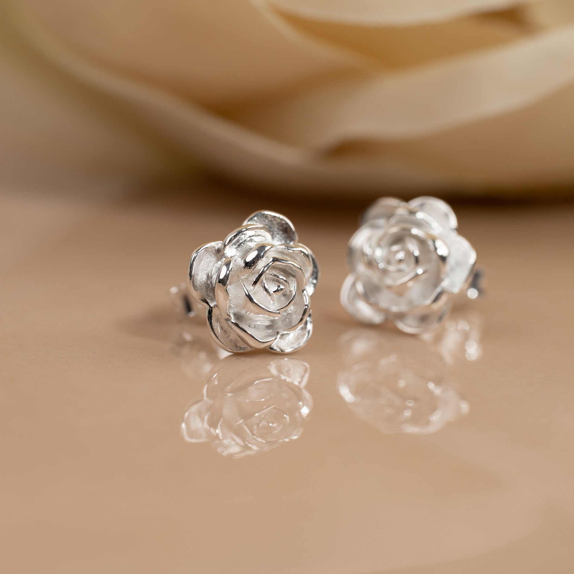 These elegant studs are crafted in the shape of roses, with detailed, soft petals that give them a romantic and sculptural feel. A timeless addition to your jewellery collection – or the perfect choice for a meaningful gift.