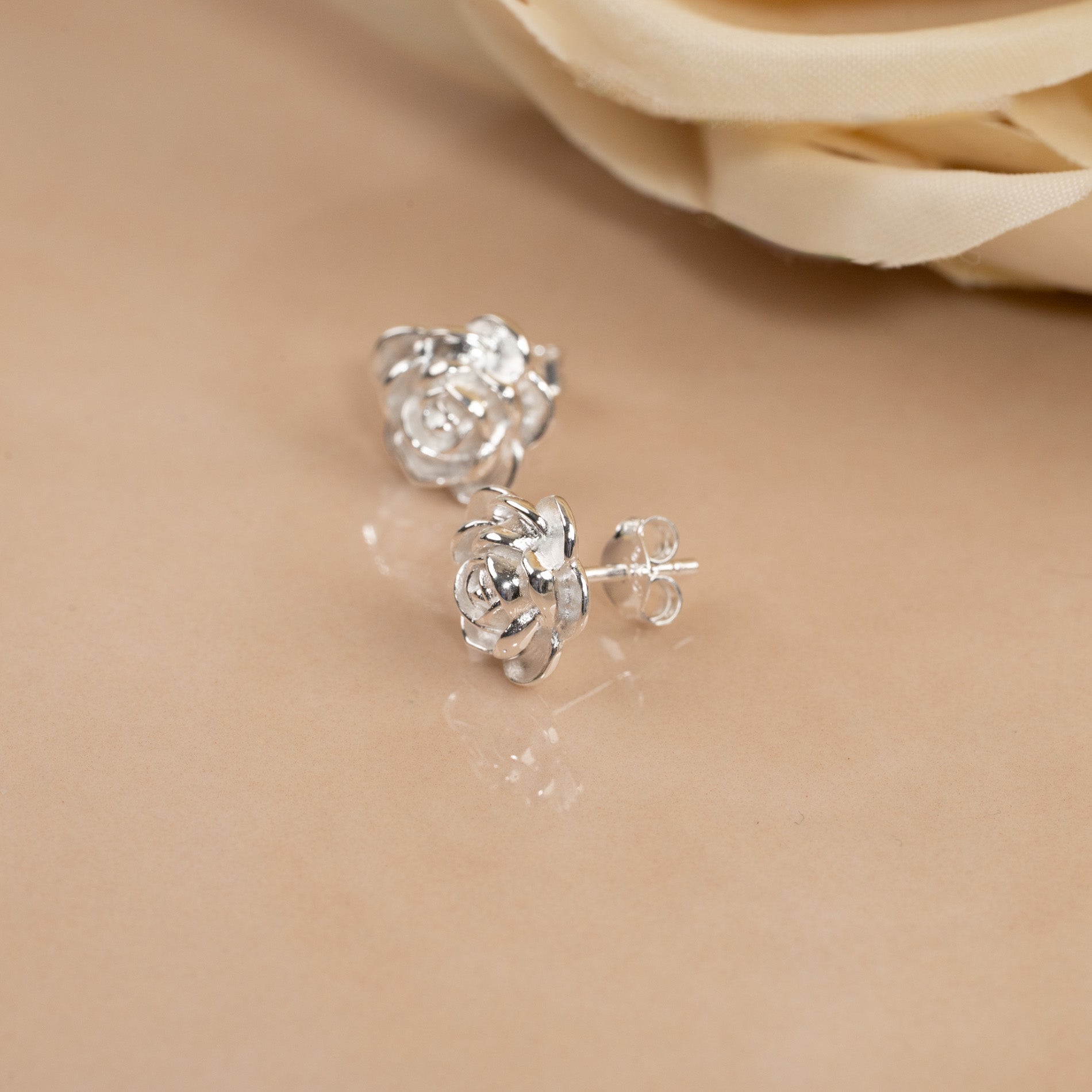 Earrings in 100% recycled 925 sterling silver, beautifully shaped like roses with soft, sculptural details.