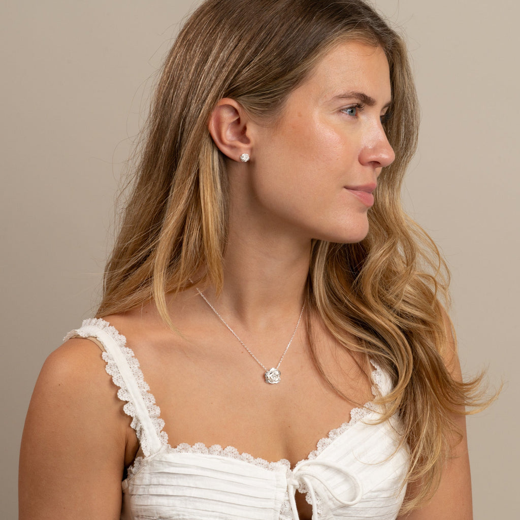 These elegant studs are crafted in the shape of roses, with detailed, soft petals that give them a romantic and sculptural feel. A timeless addition to your jewellery collection – or the perfect choice for a meaningful gift.