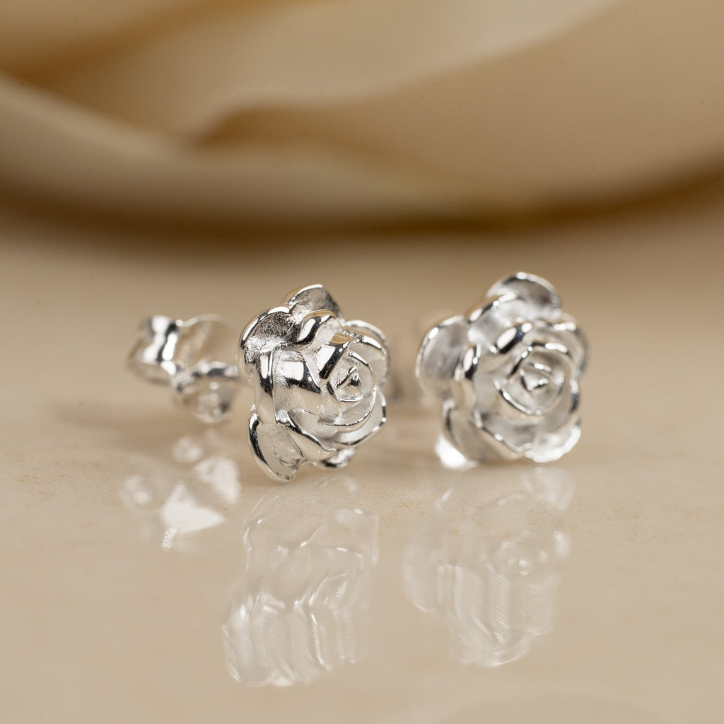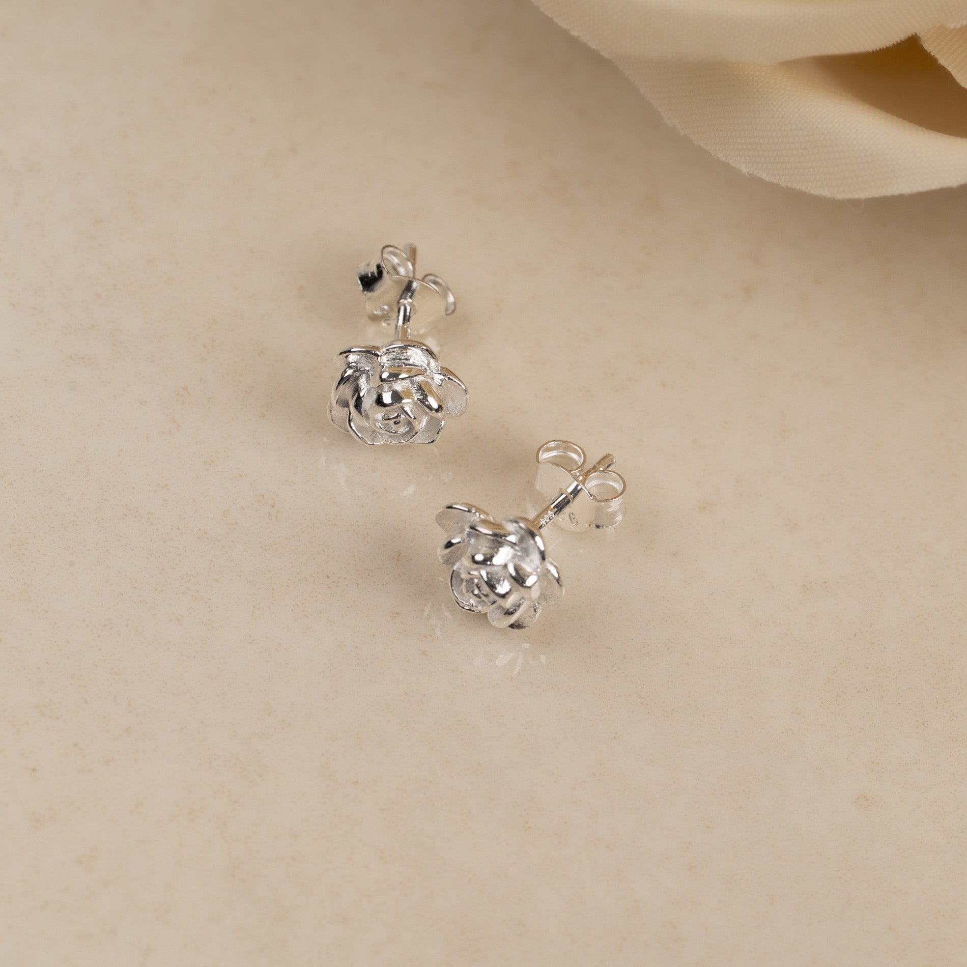 Earrings in 100% recycled sterling silver, beautifully shaped like roses with soft, sculptural details.