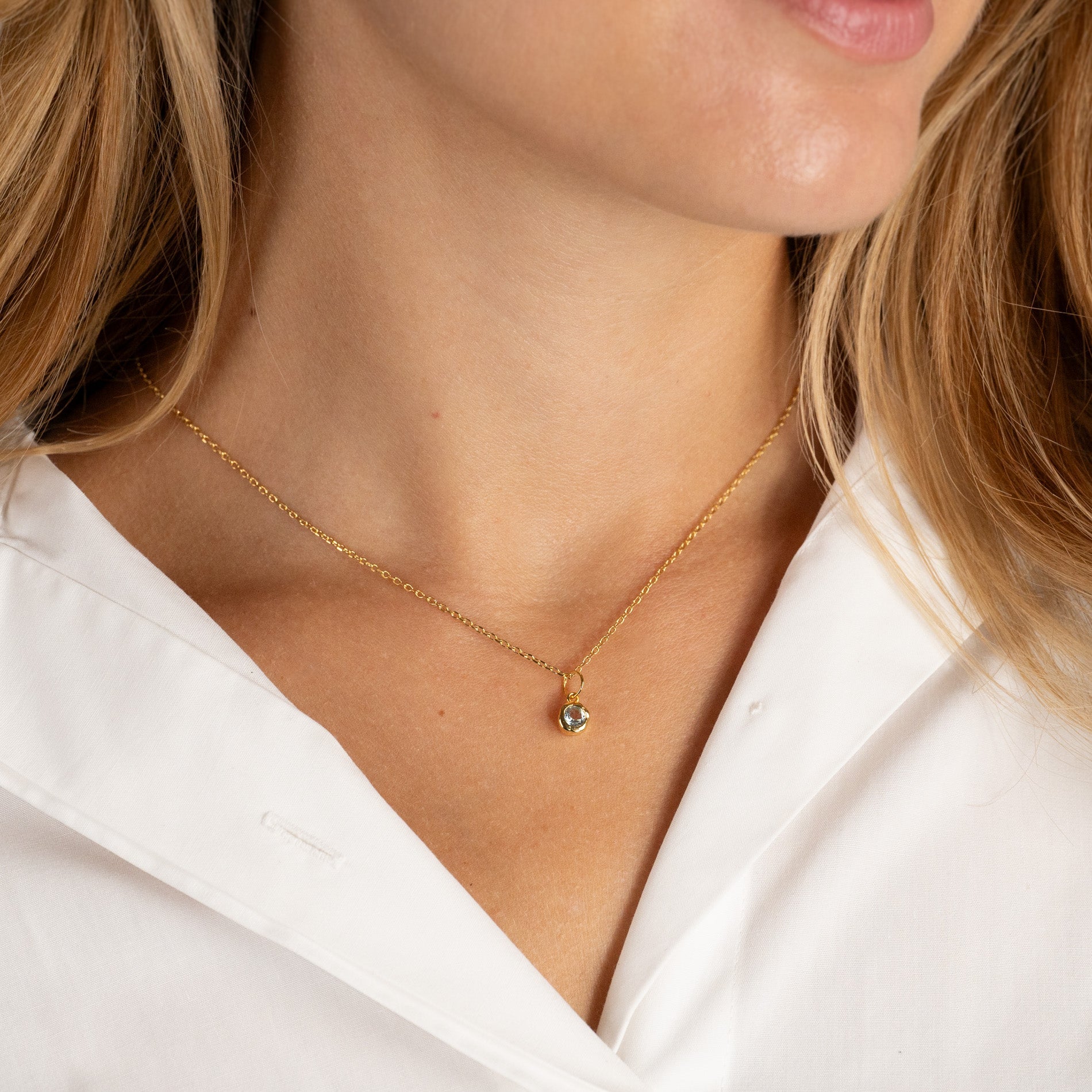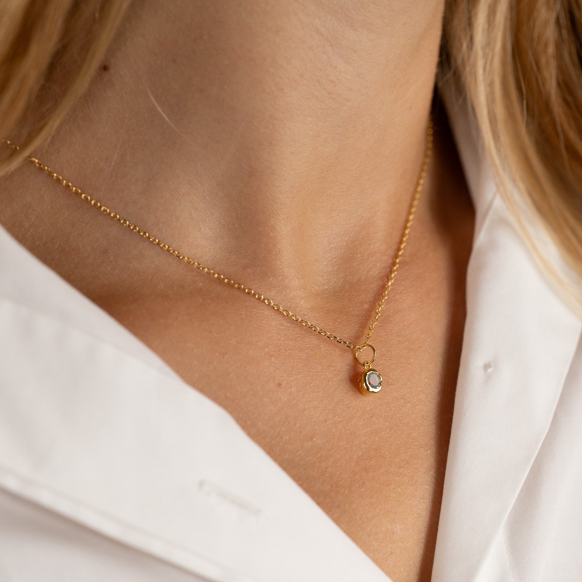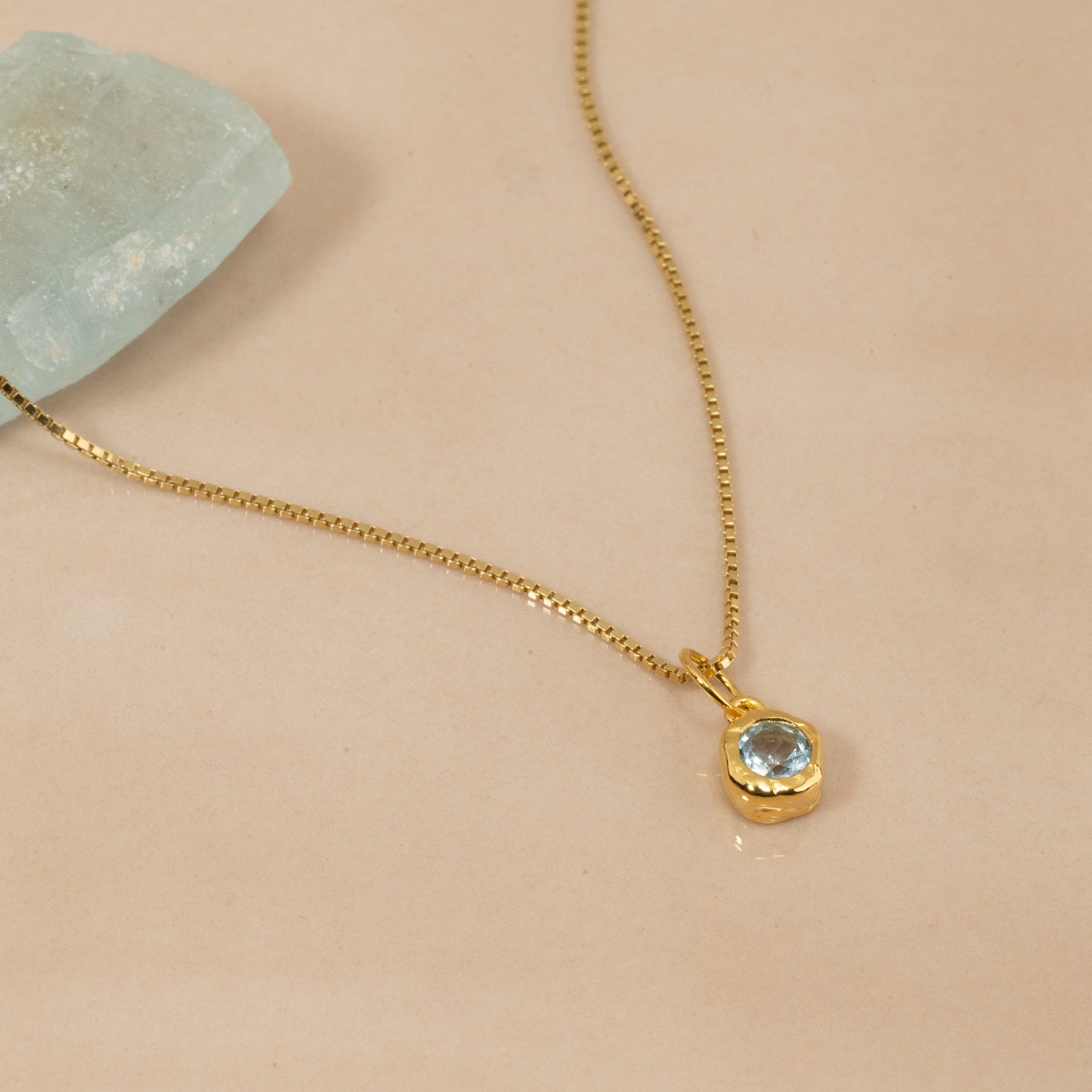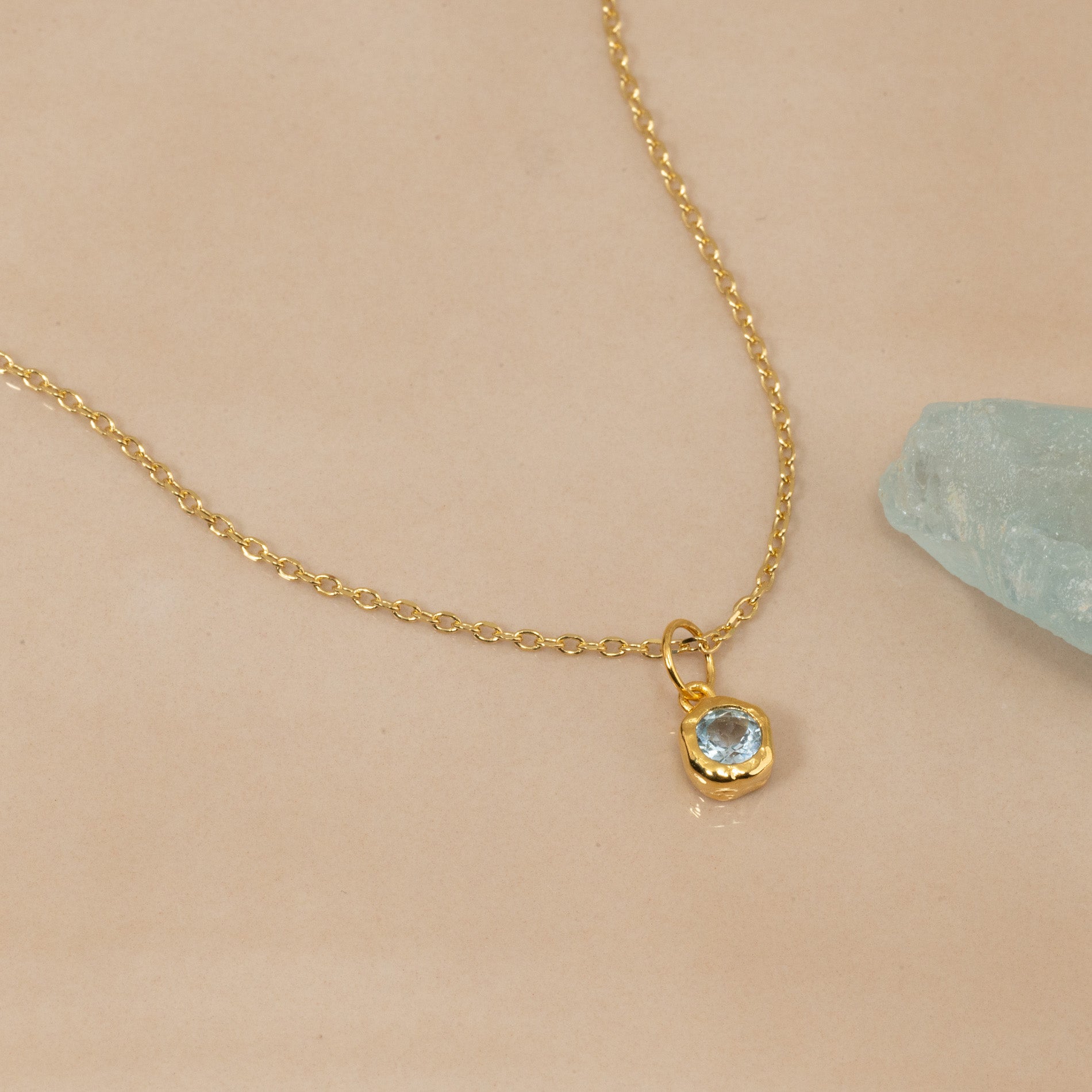Necklace pendant in 100% recycled 18kt. gold-plated sterling silver with a faceted blue topaz.