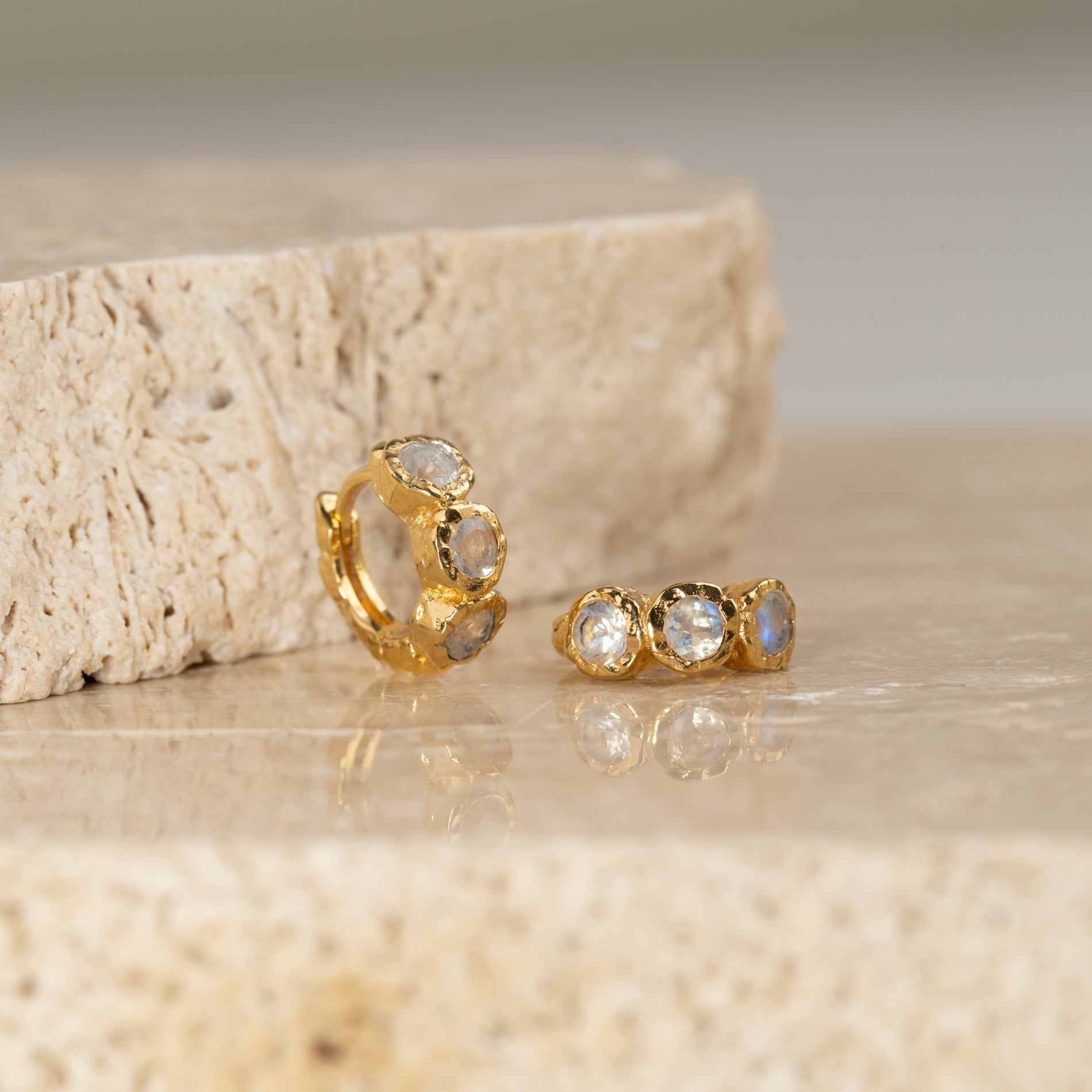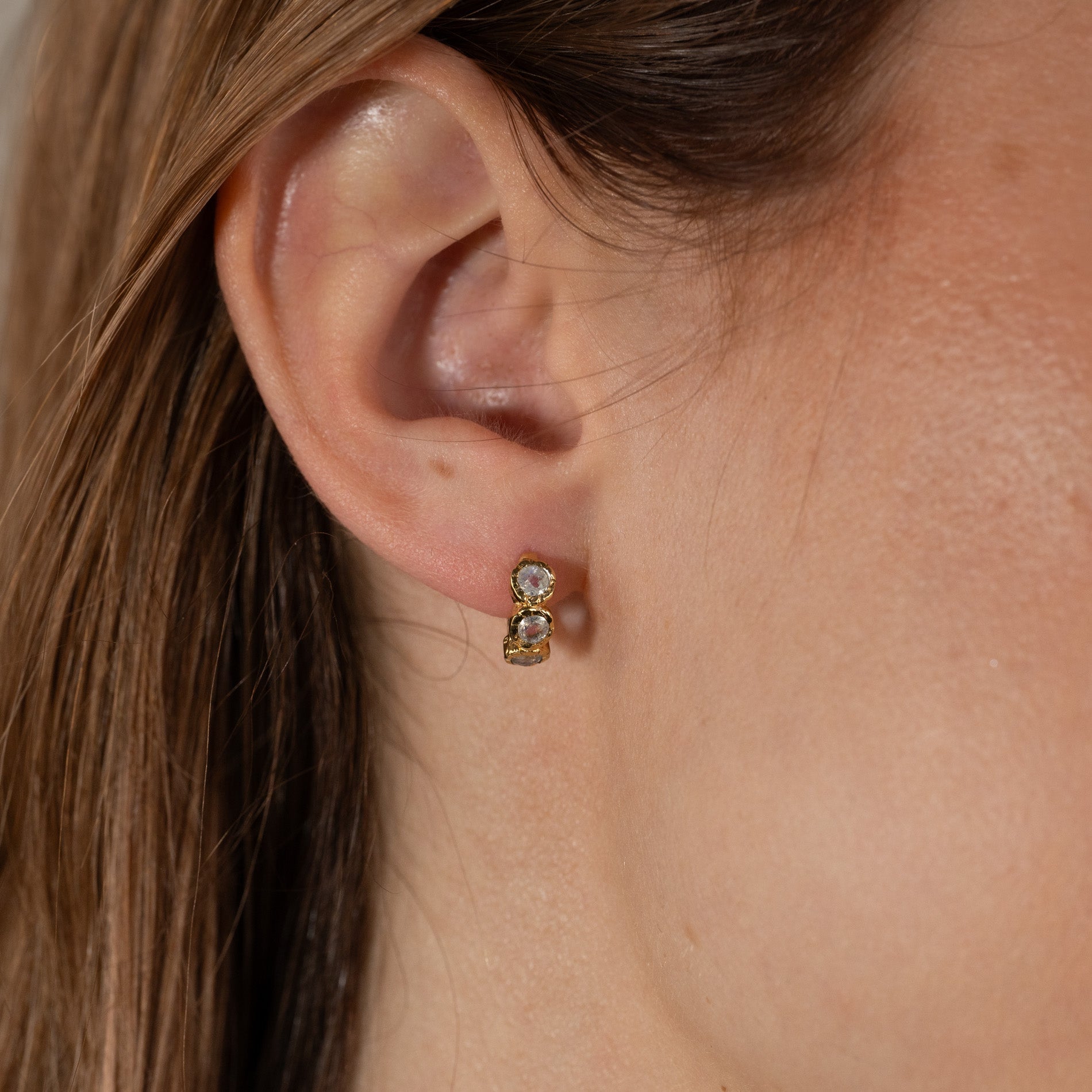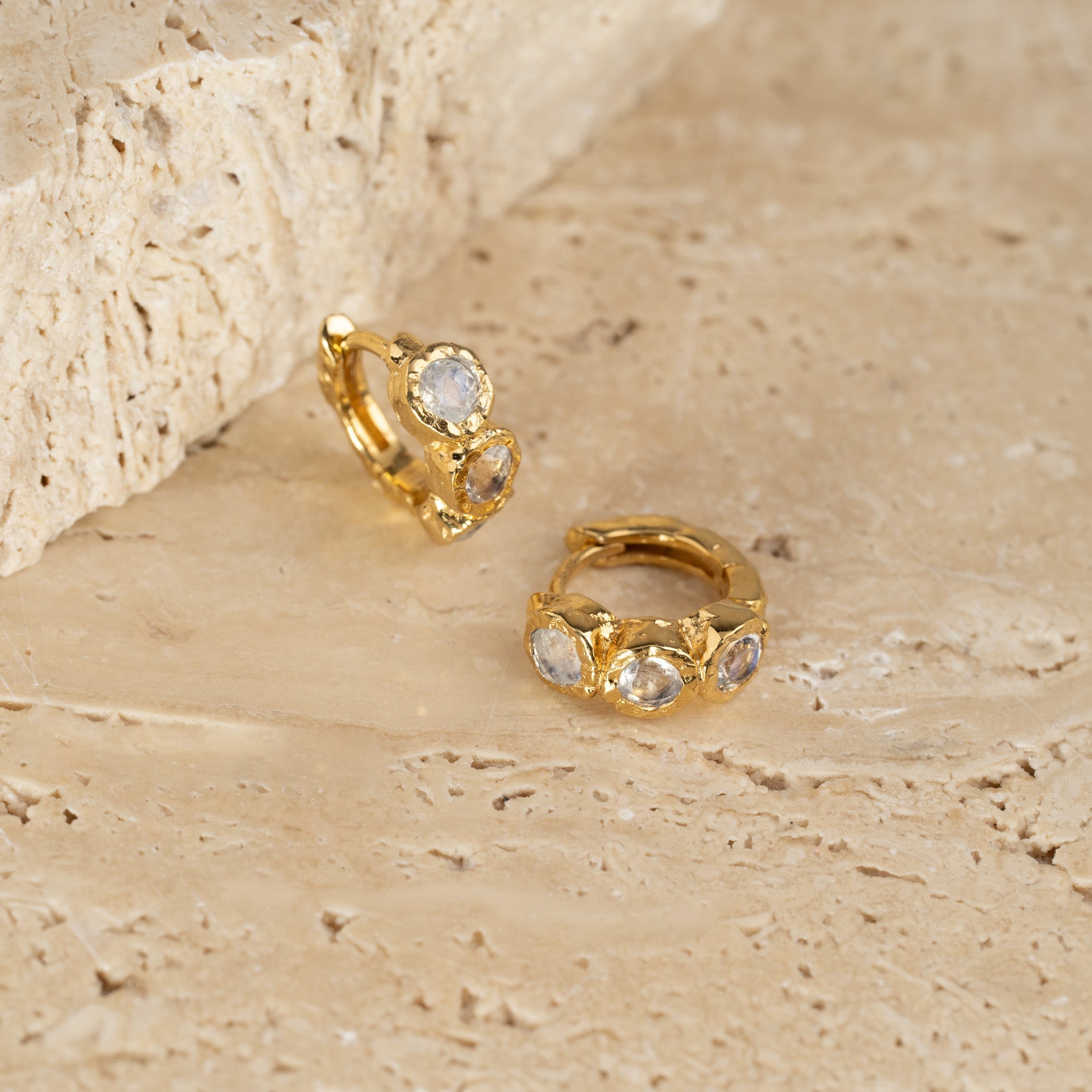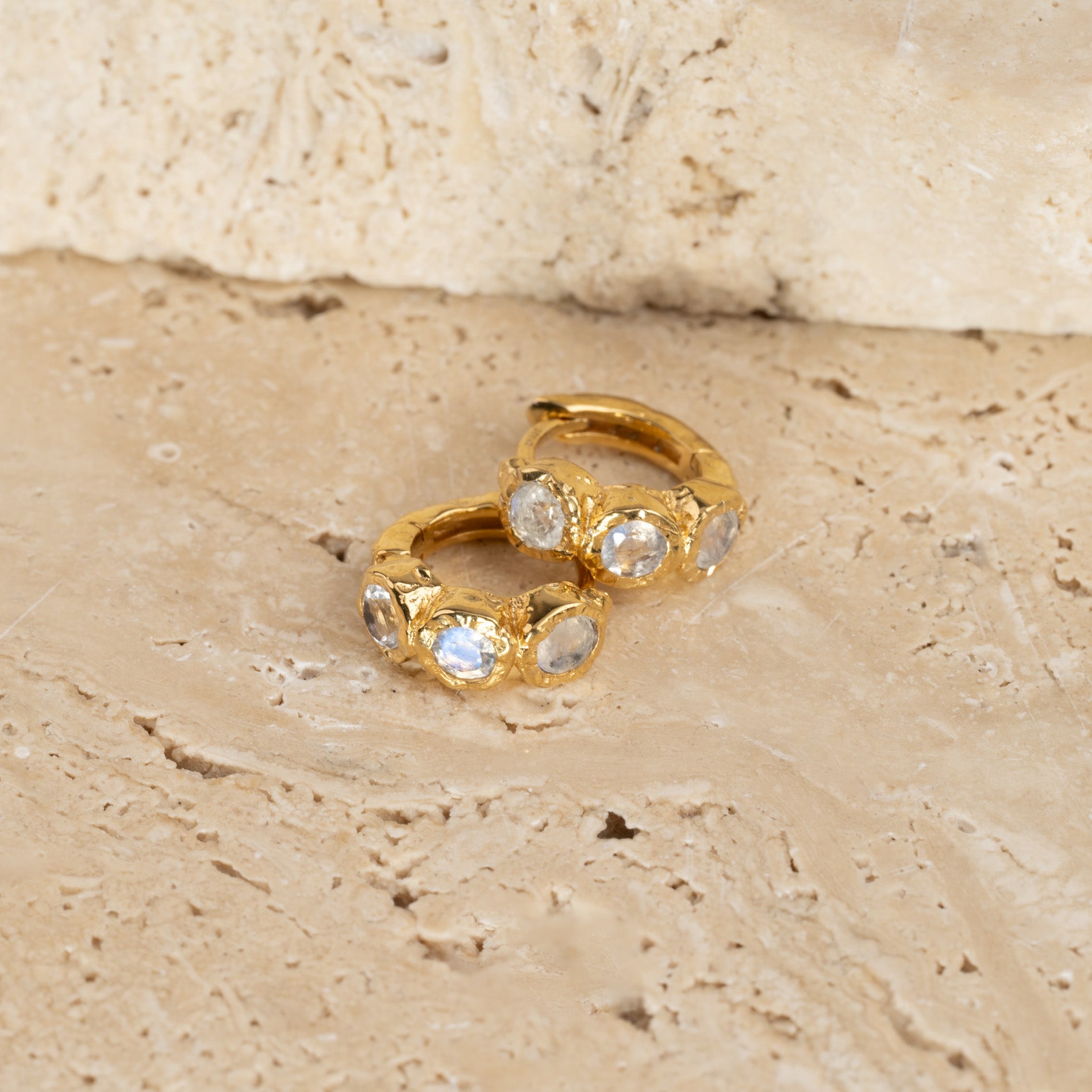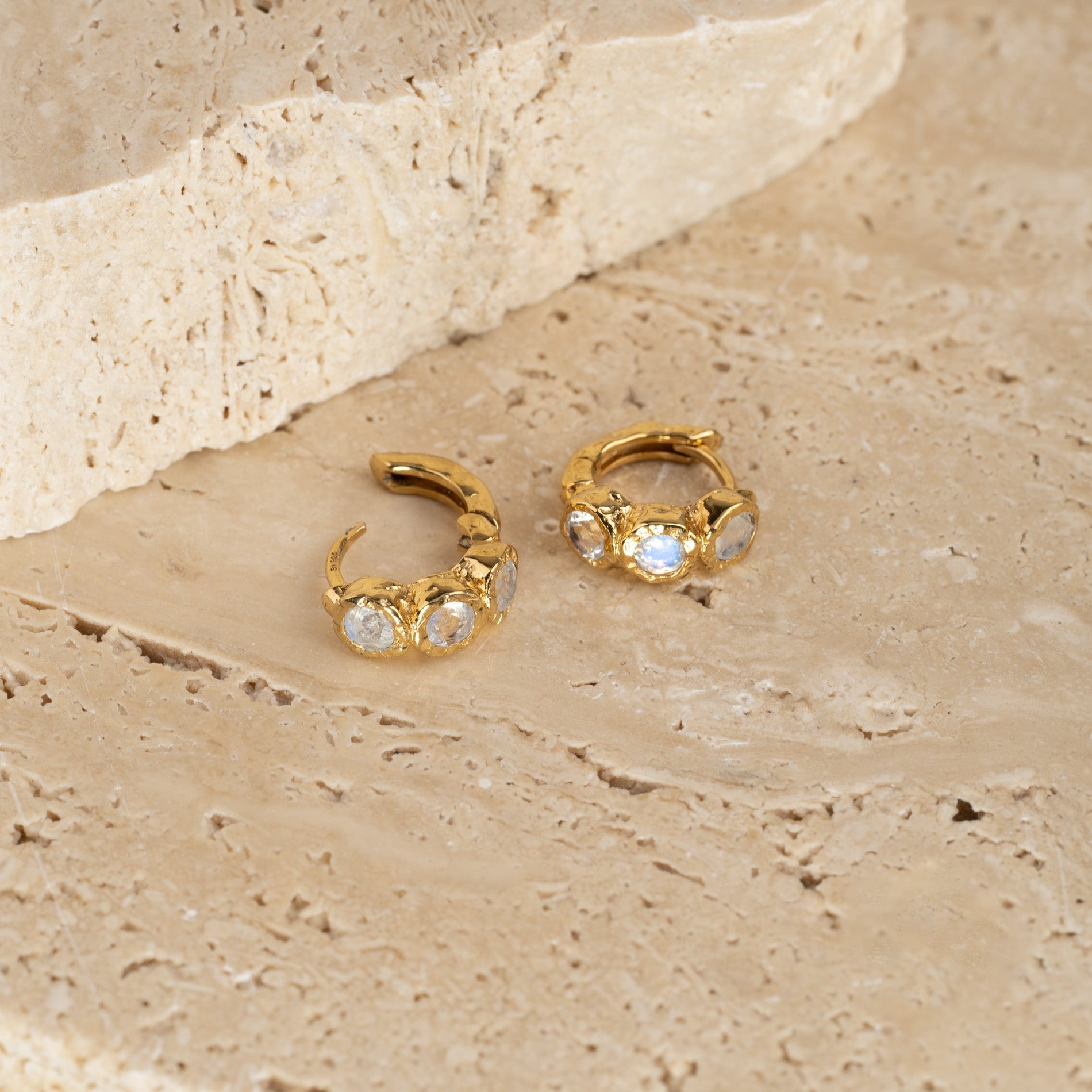 Gold-plated huggies with three faceted moonstones