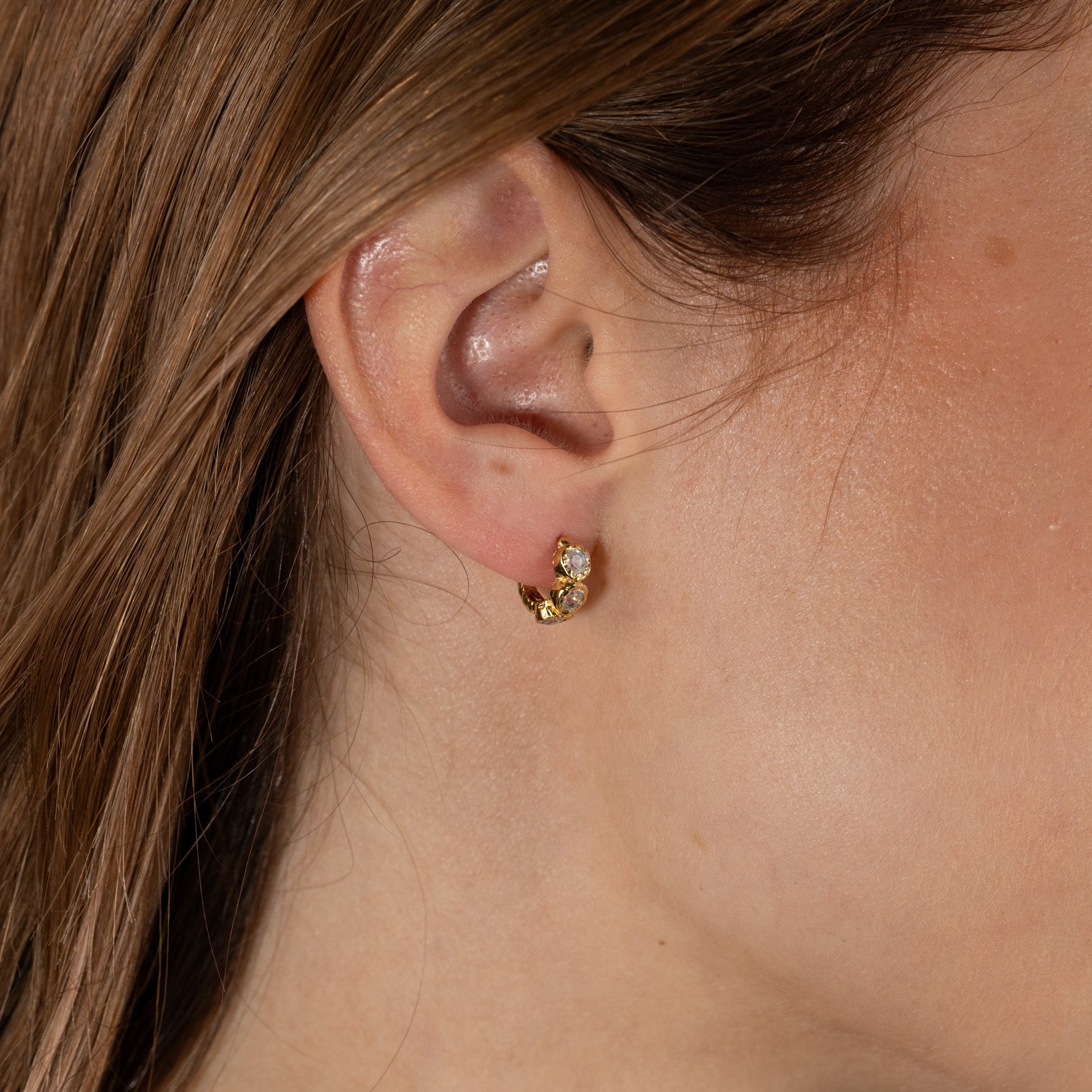 These delicate huggies have a modern twist, making them perfect for both everyday wear and special occasions, and can be worn alone or combined with other ear jewelry.