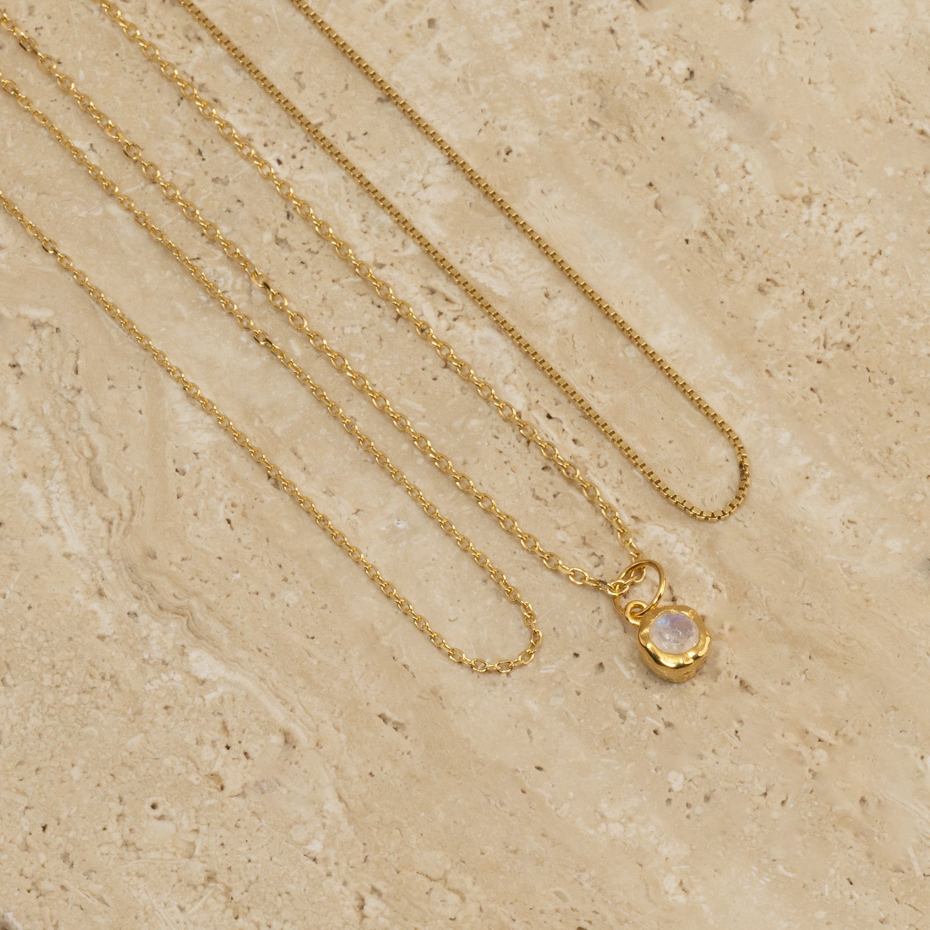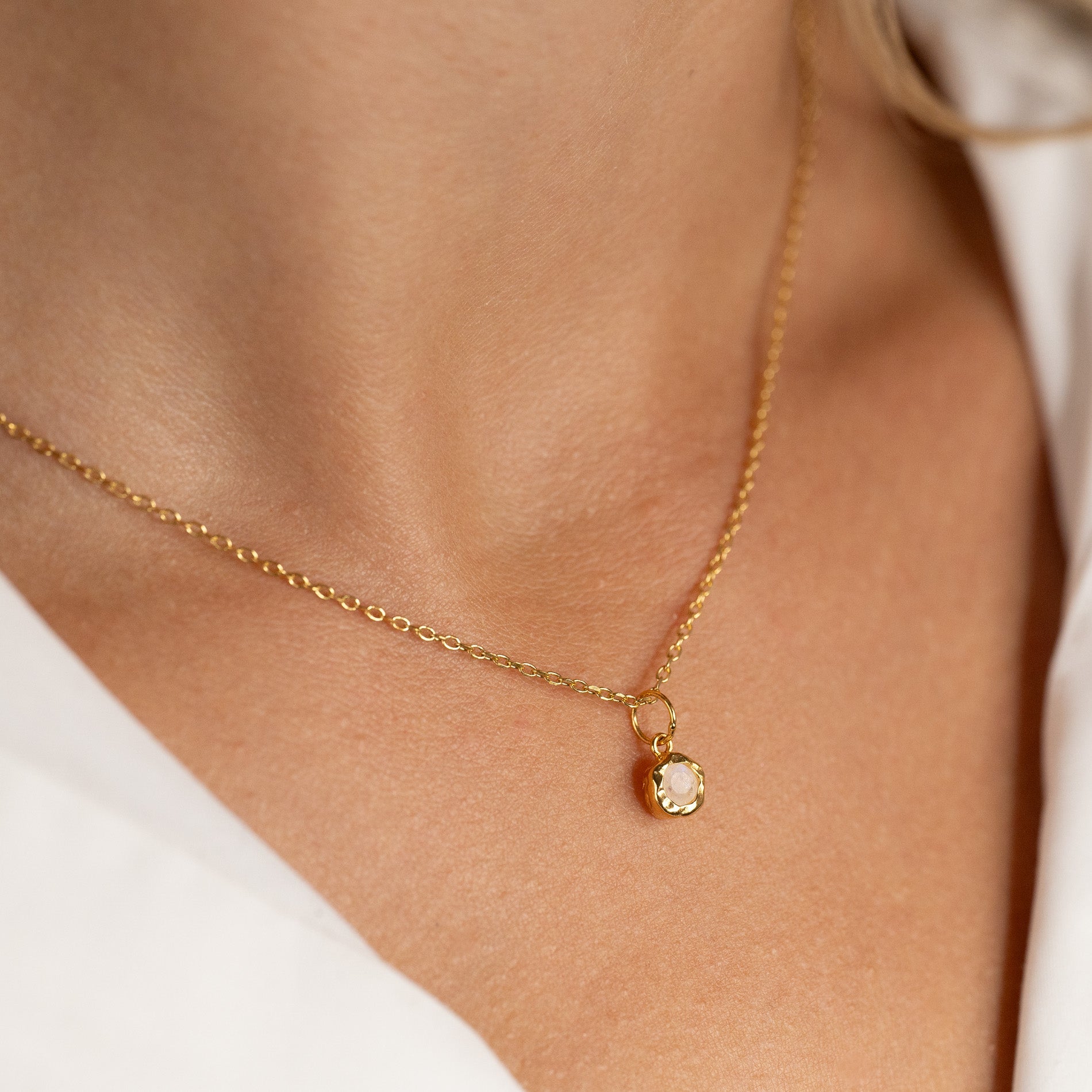 This delicate pendant is a timeless classic, perfect for both everyday wear and special occasions. It can be worn alone or layered with other necklaces. If you love moonstone, you can find many more pieces featuring this beautiful stone here.