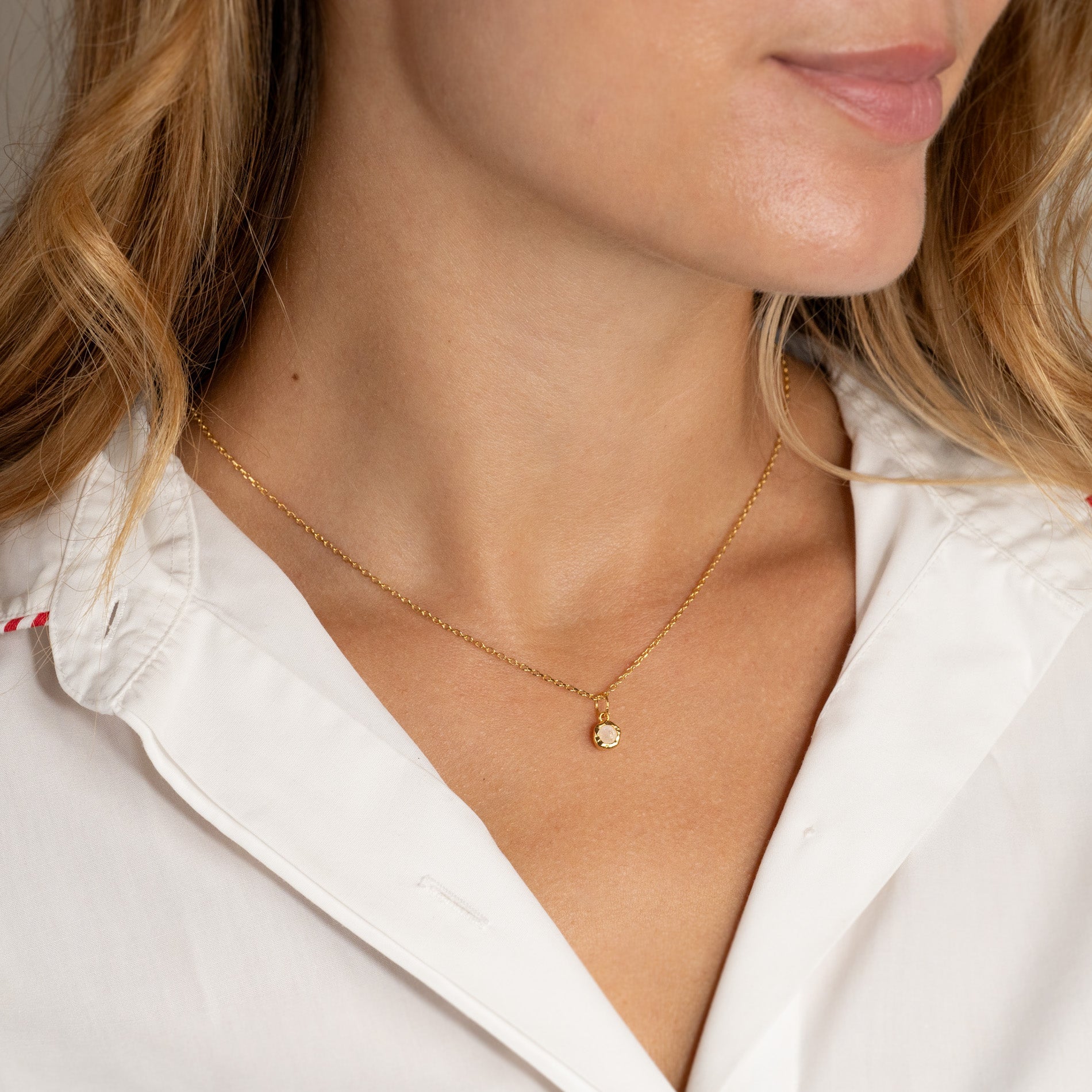 Necklace pendant in 100% recycled 18kt. gold-plated sterling silver with a faceted moonstone.