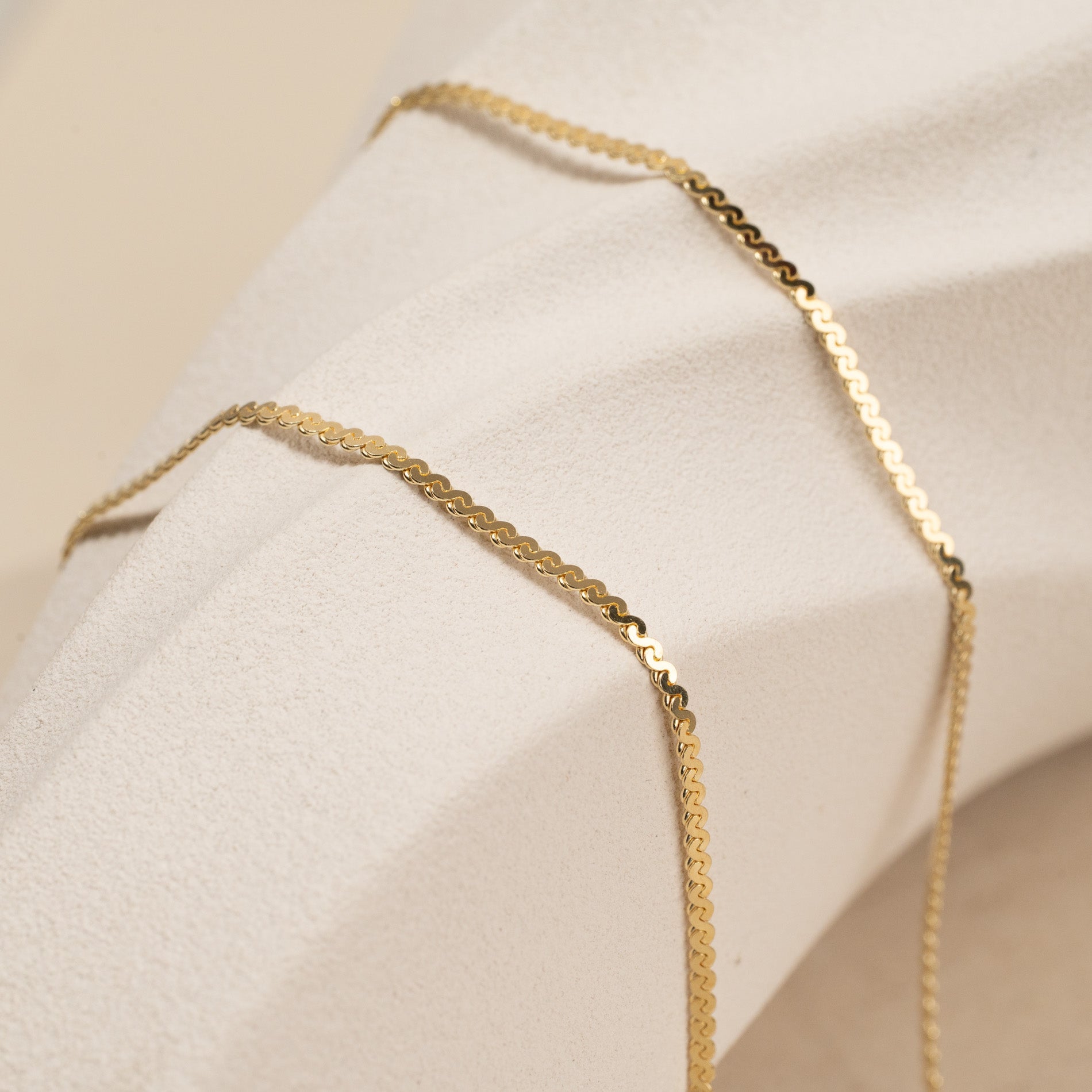 Necklace made in 100% recycled 18 karat gold plated 925 sterling silver with a smooth and wave-like chain design.