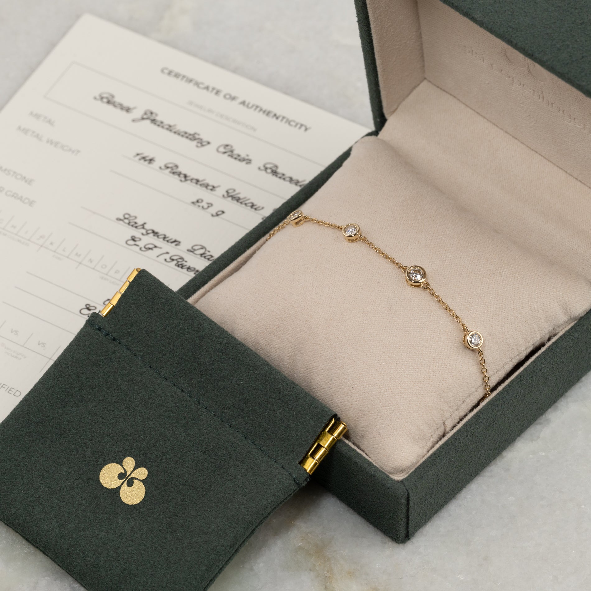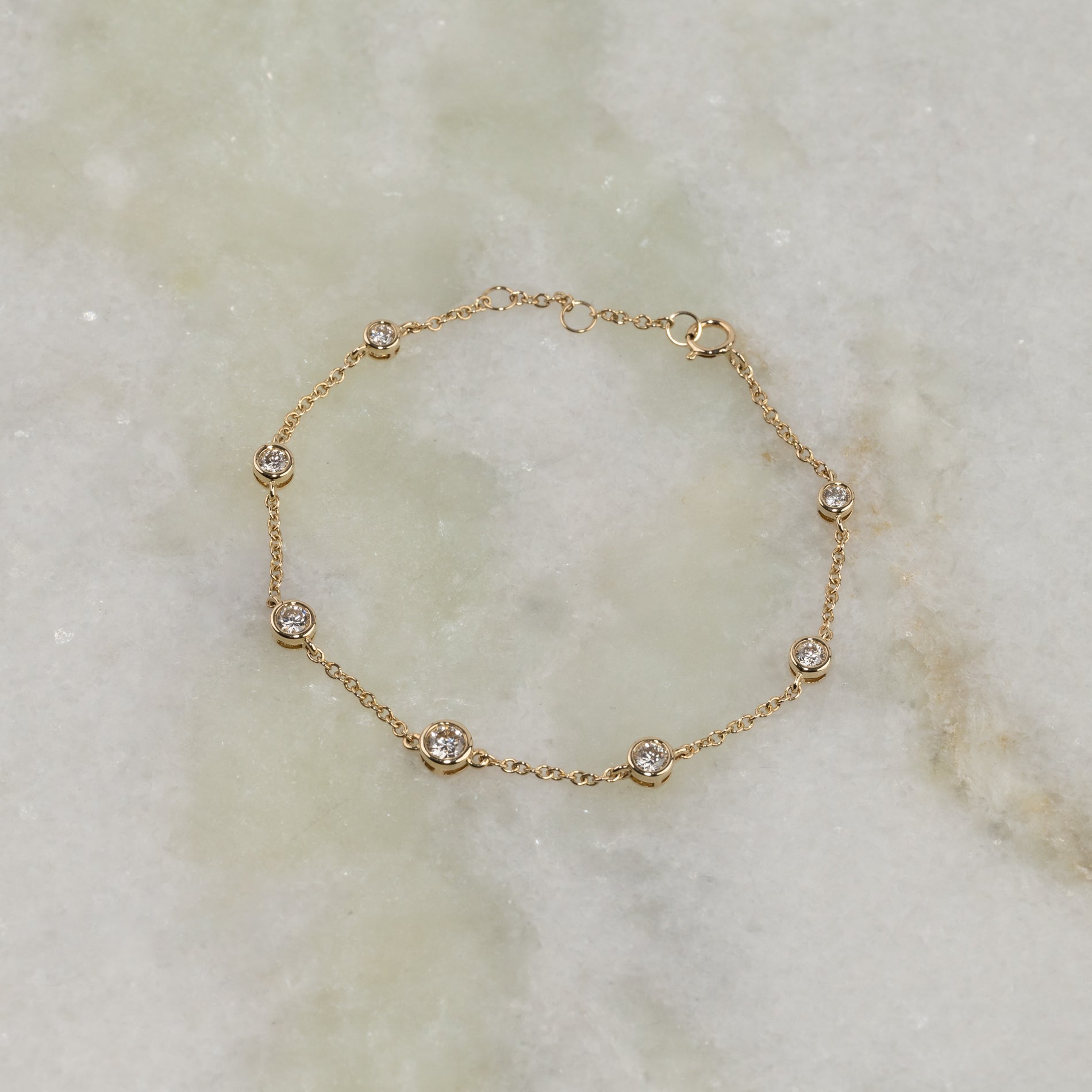 A classic and timeless bracelet crafted in solid 14 karat gold, set with seven graduated lab-grown diamonds in elegant bezel settings.