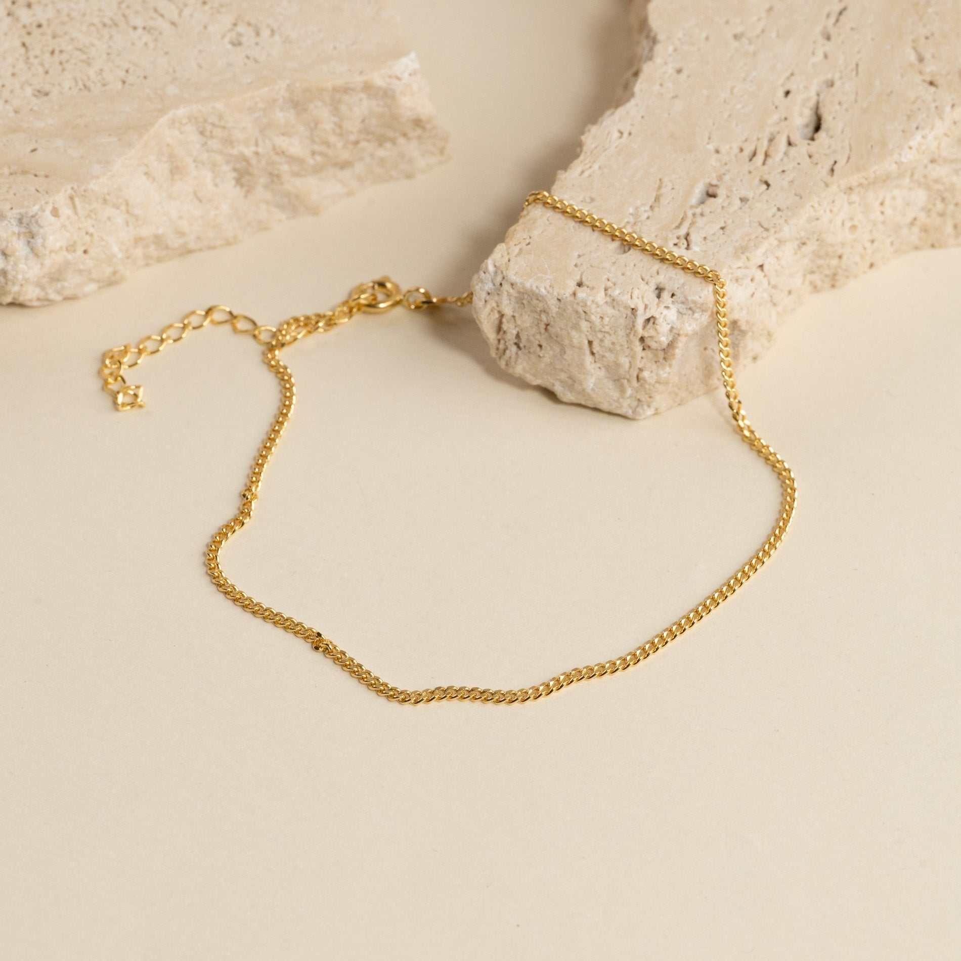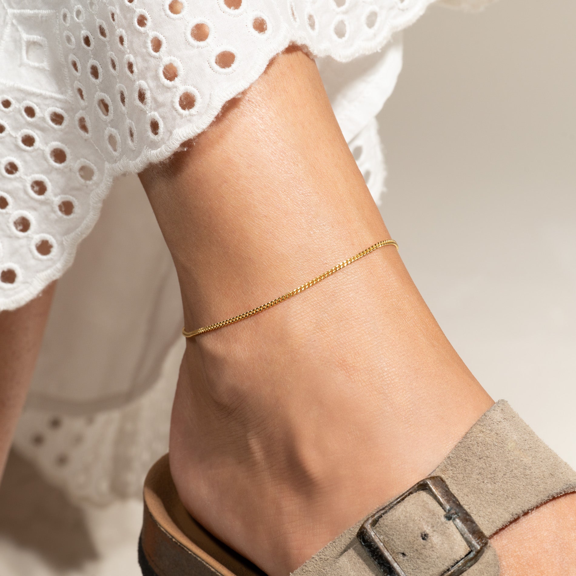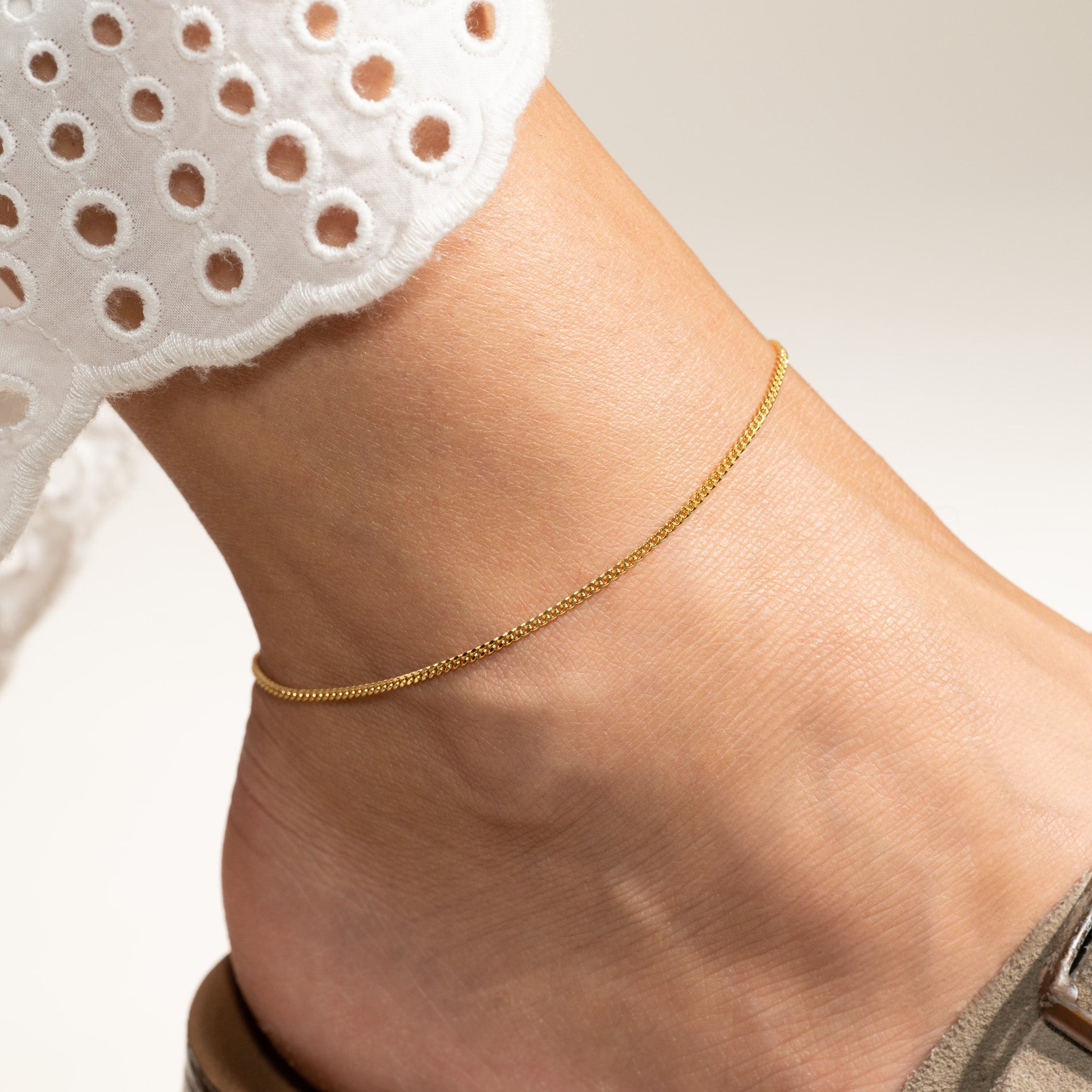 Our Sia mini ankle chain has a raw but classy look.