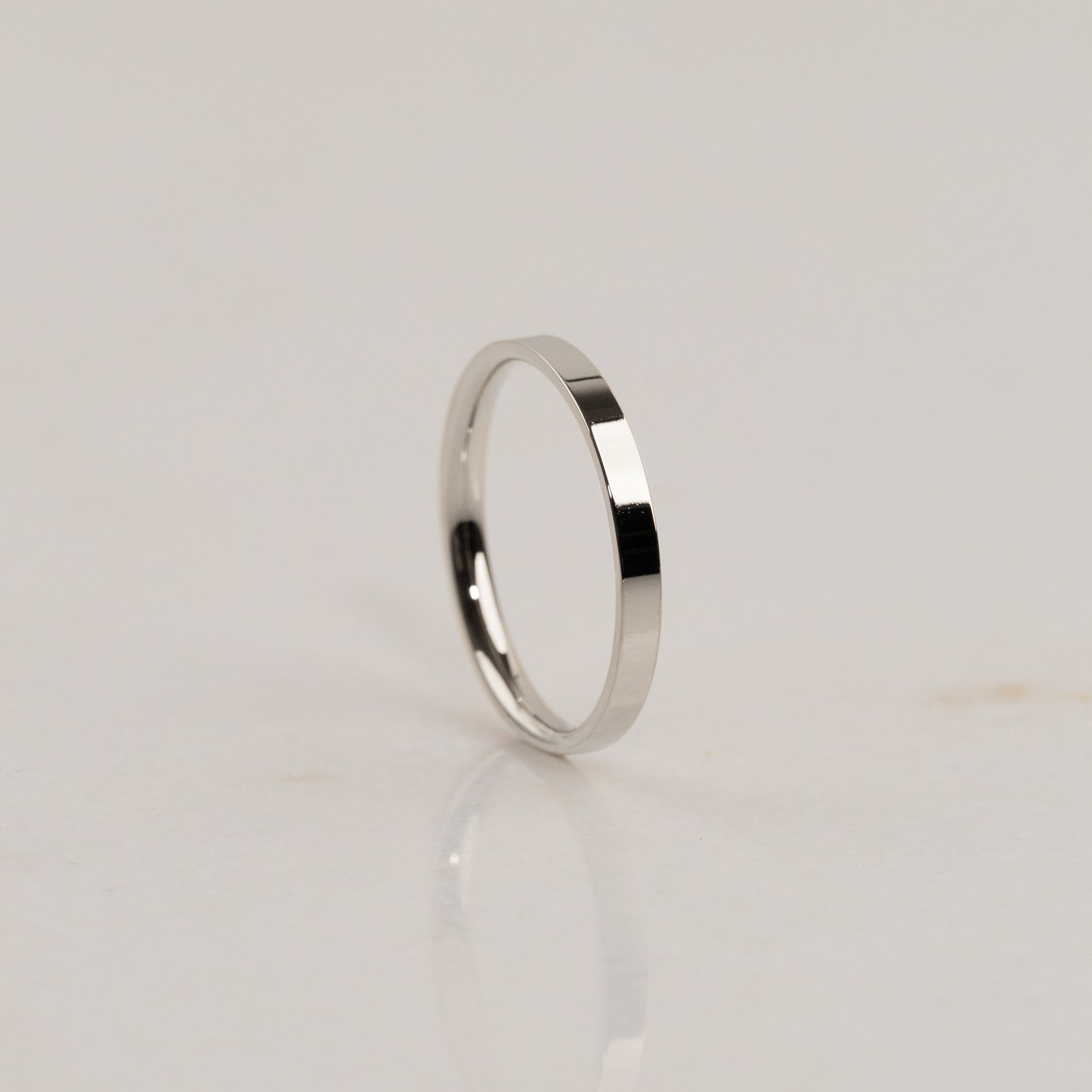 The 2.5 mm band is one of our more slender profiles. At this width, we recommend a thickness of 1.5 mm to maintain balanced proportions and ensure the ring does not feel too delicate - especially in sizes above 54.