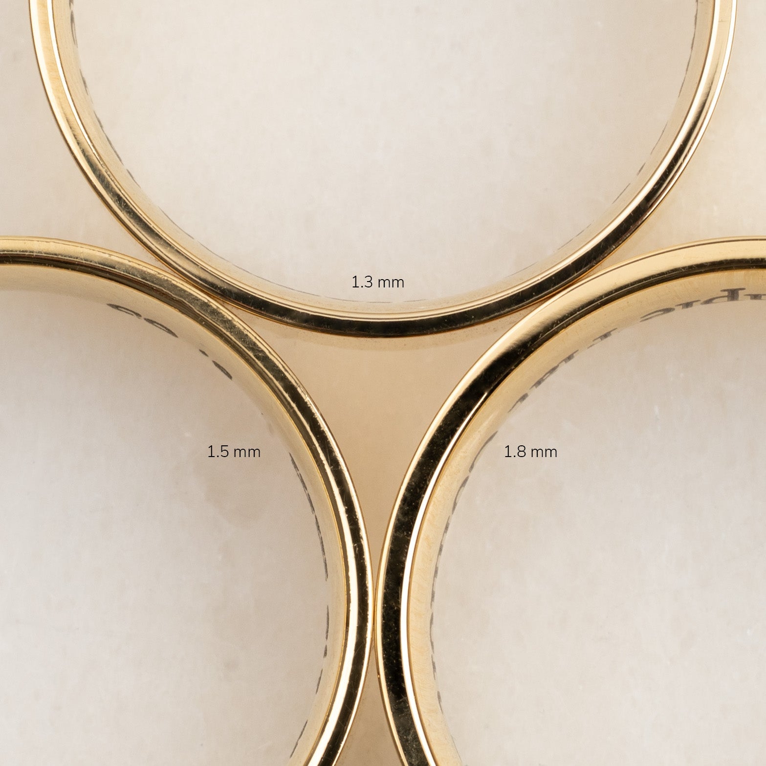 The Classic D-profile has a flat interior and a curved exterior, giving the ring its characteristic D-shape. It is a timeless wedding band in a classic design.