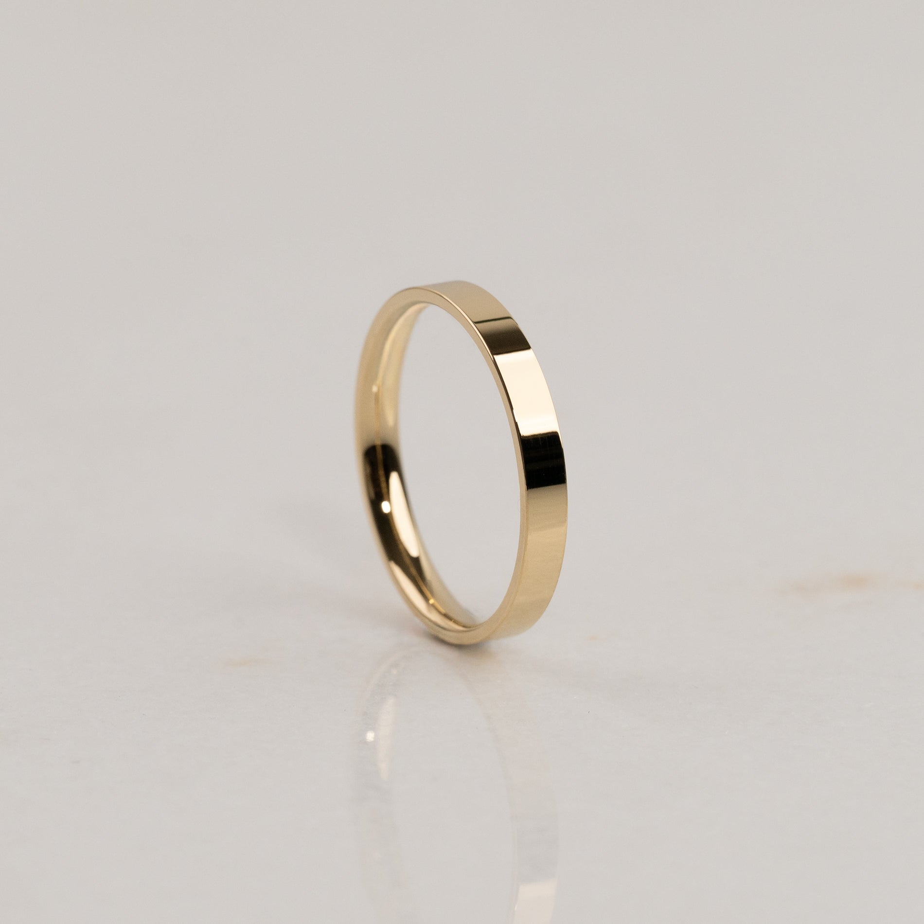 Our Flat Comfort wedding band has a modern and minimalistic design. The flat exterior creates a clean, sharp look, while the gently rounded interior ensures a comfortable fit.