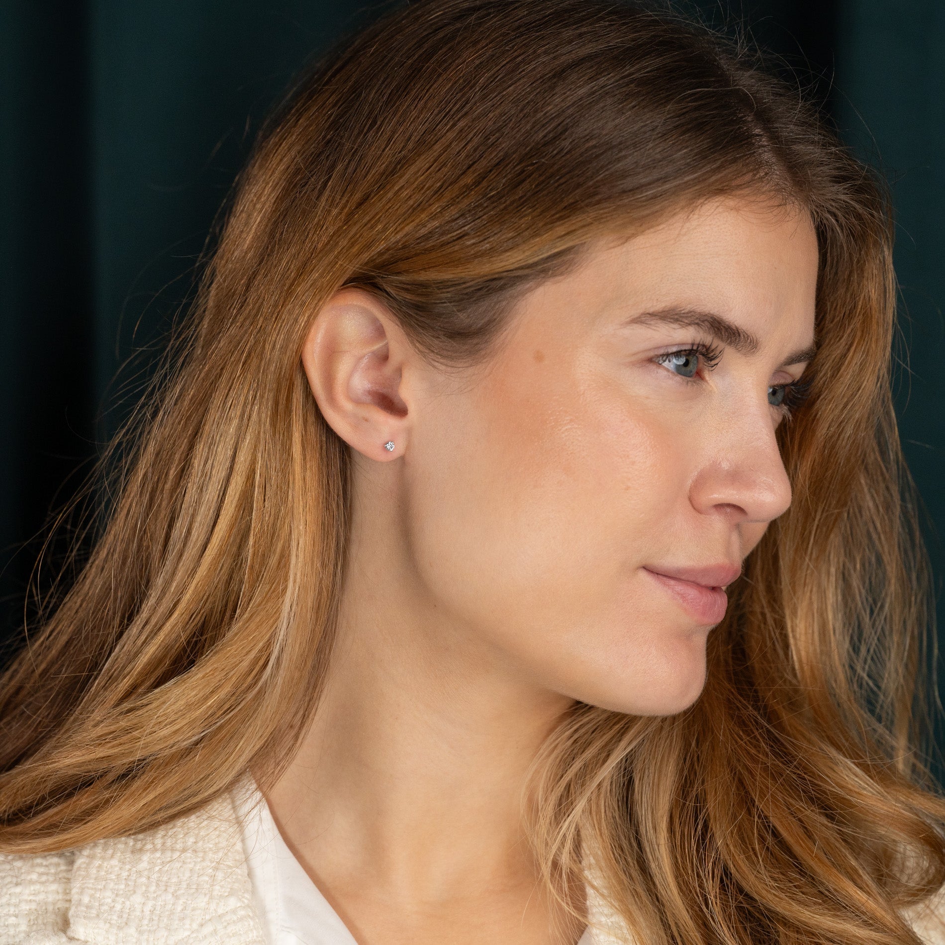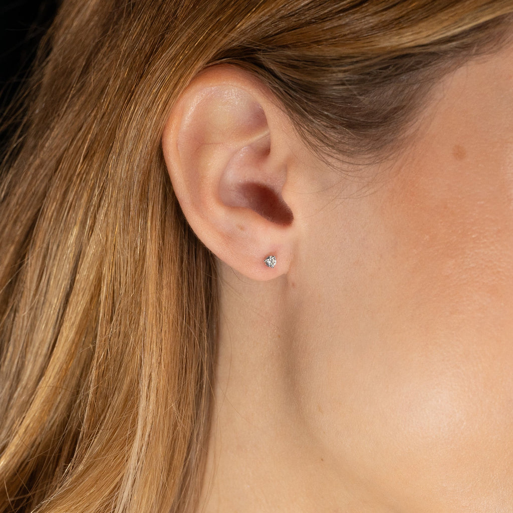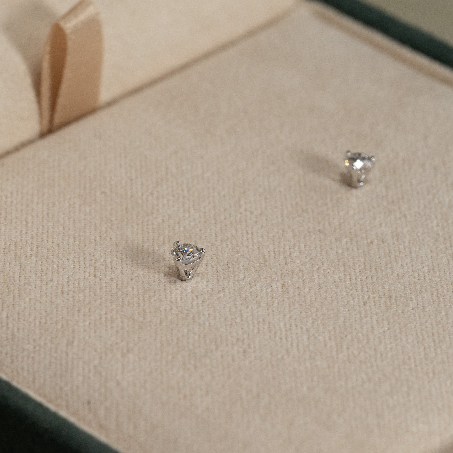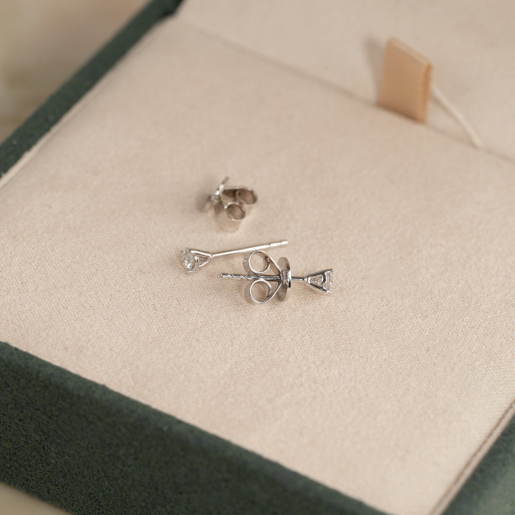 Our solitaire diamond stud earrings are made in 14 karat solid white gold with lab-grown diamonds of 0.2 ct.