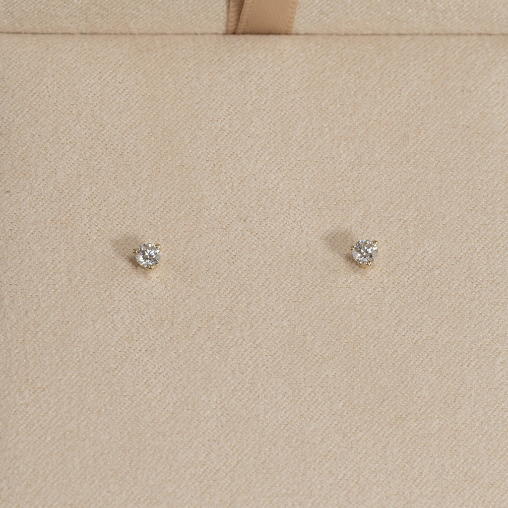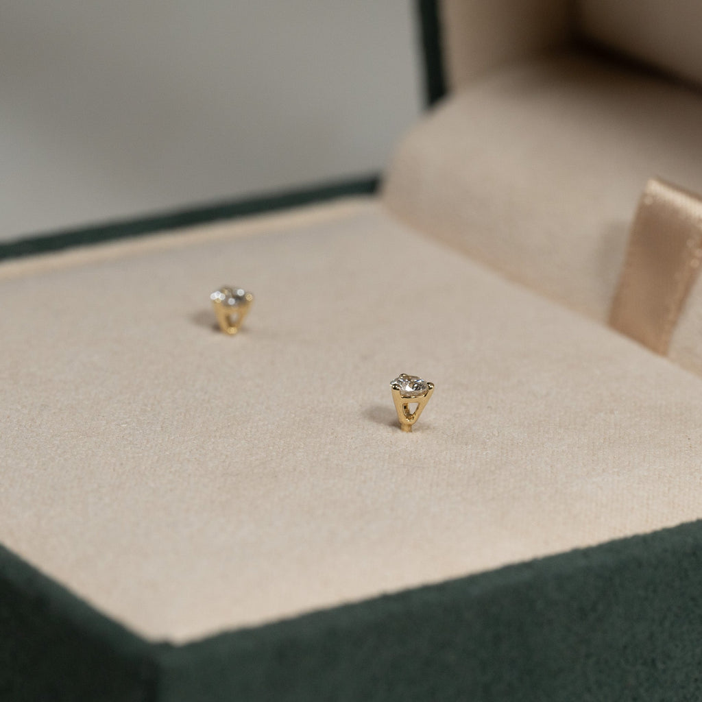 Our solitaire diamond stud earrings are made in 14 karat solid gold with lab-grown diamonds of 0.2 ct.