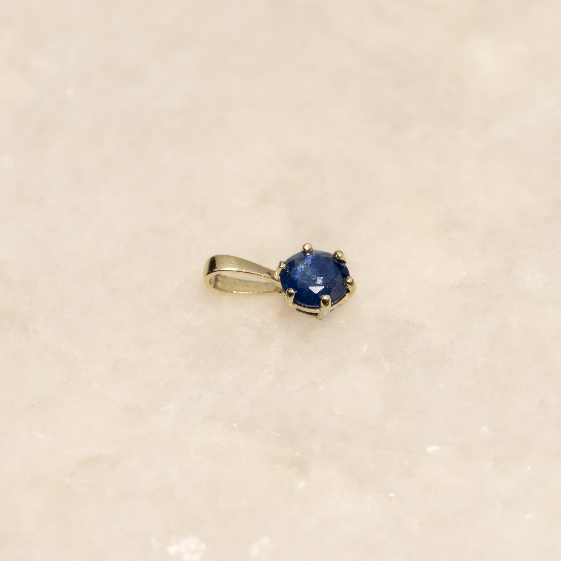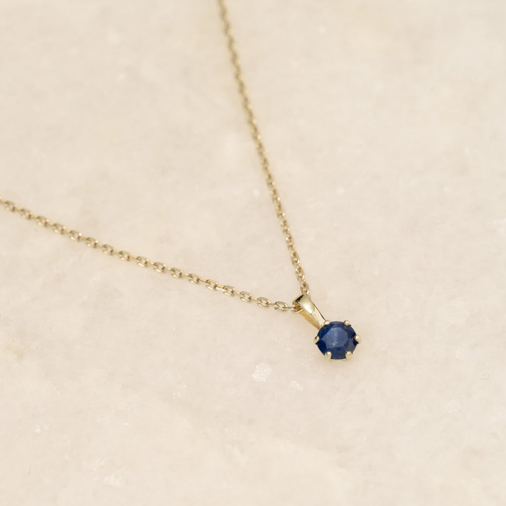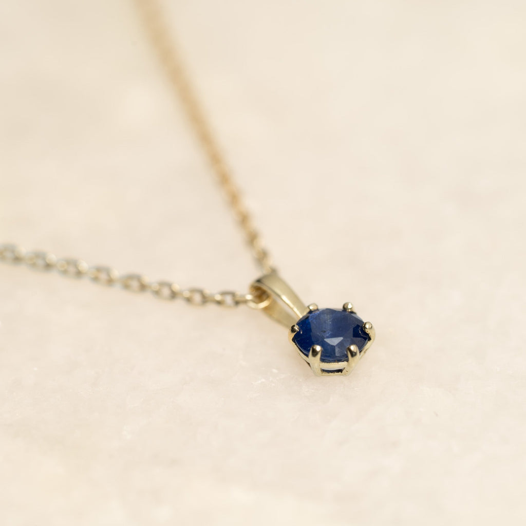 This pendant is made from 100% recycled 9 karat solid gold and features a beautiful sapphire gemstone. The pendant is elegant, feminine, and simple in design.