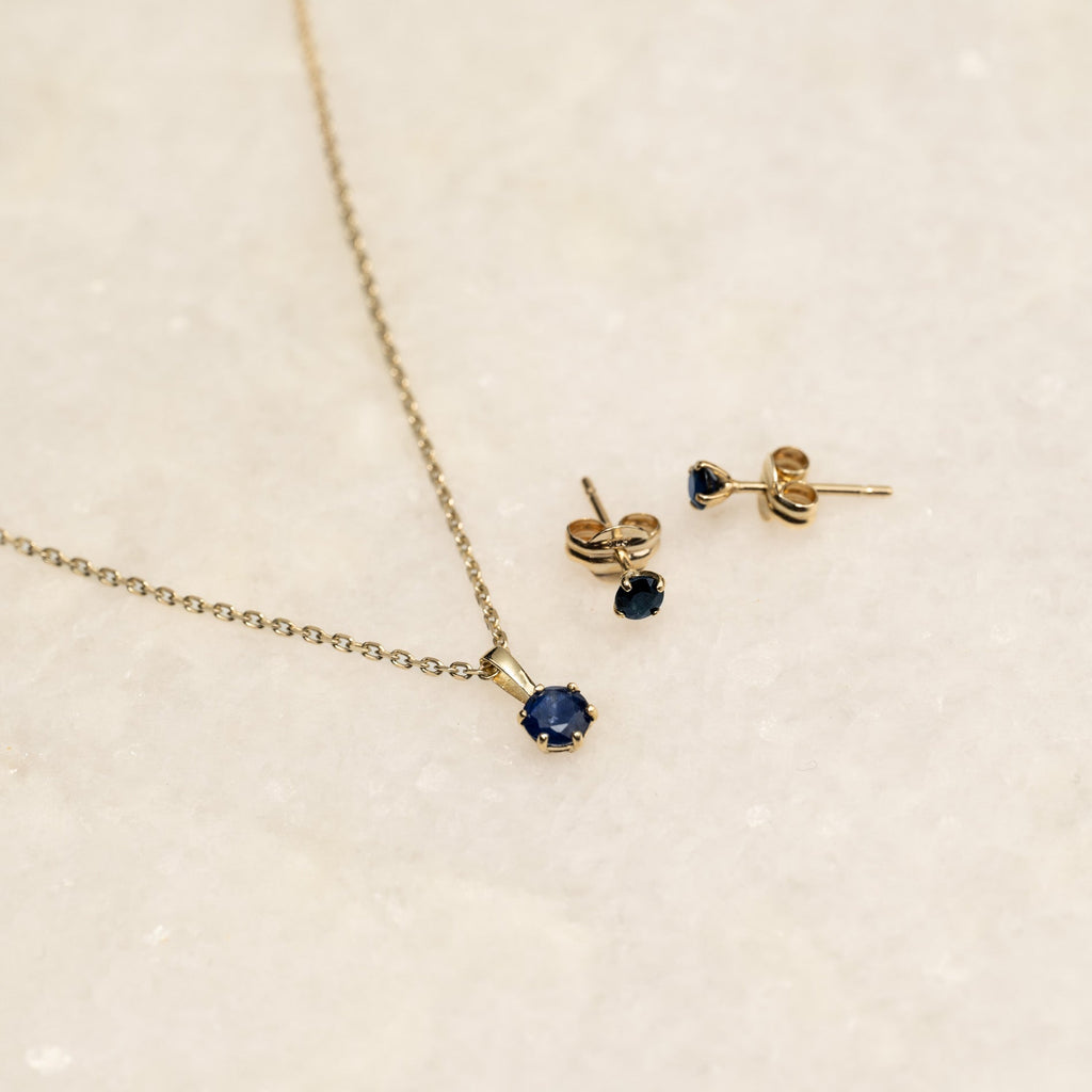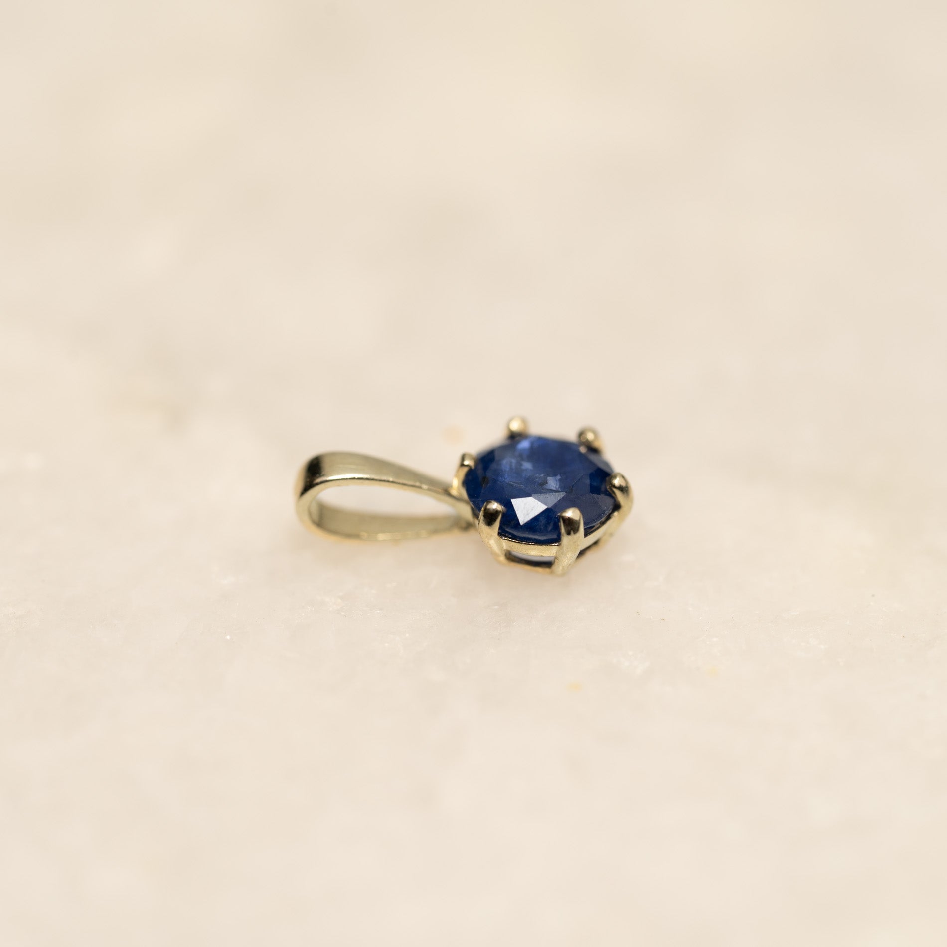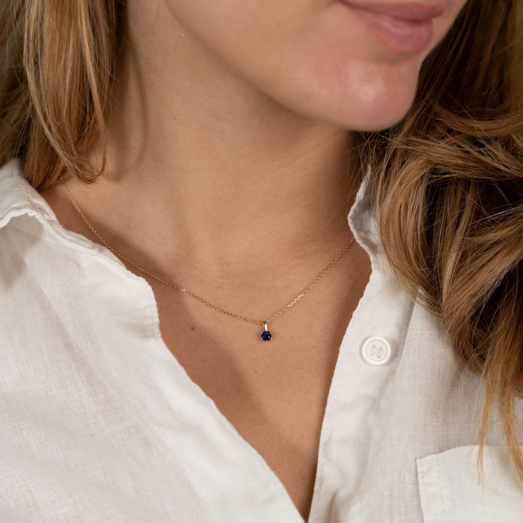 This pendant is made from 100% recycled 9 karat solid gold and features a beautiful sapphire gemstone. The pendant is elegant, feminine, and simple in design.
