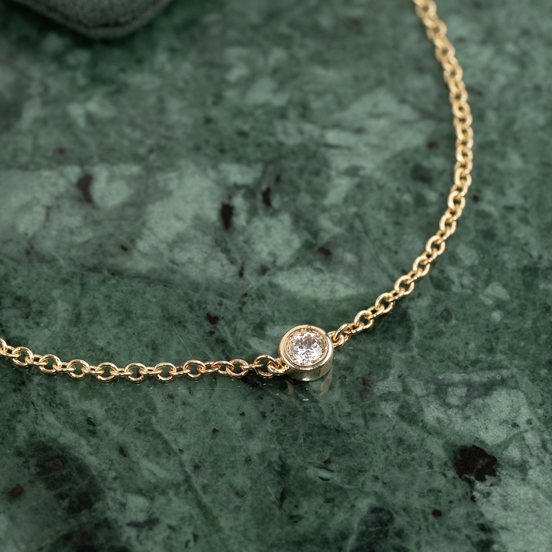 A classic and timeless bracelet in 14kt. solid gold, set with a lab-grown diamond in an elegant bezel setting.
