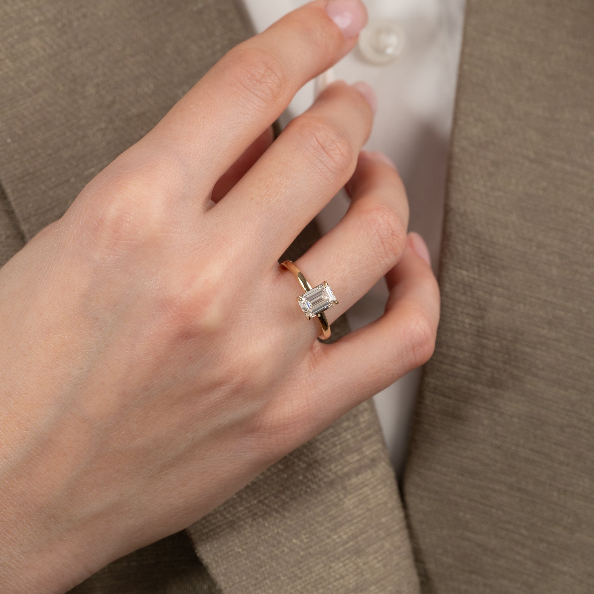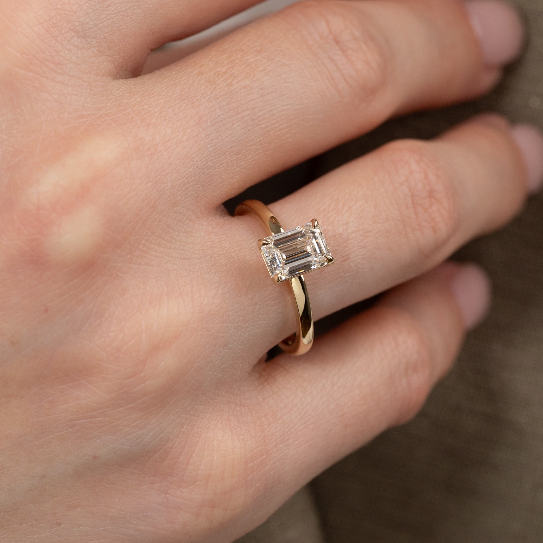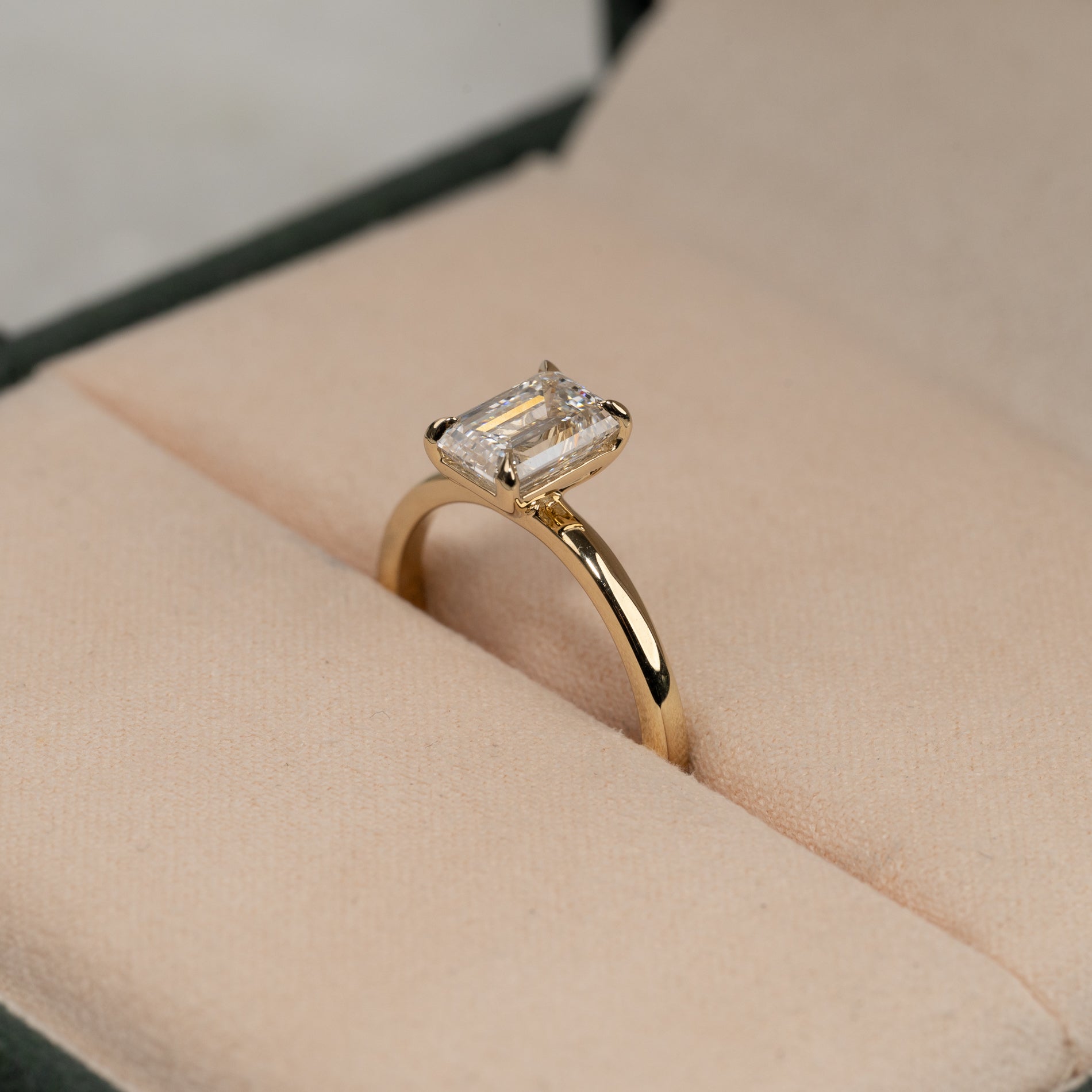 Solitaire ring with a 1.5 ct. emerald-cut lab-grown diamond in 14 kt. gold