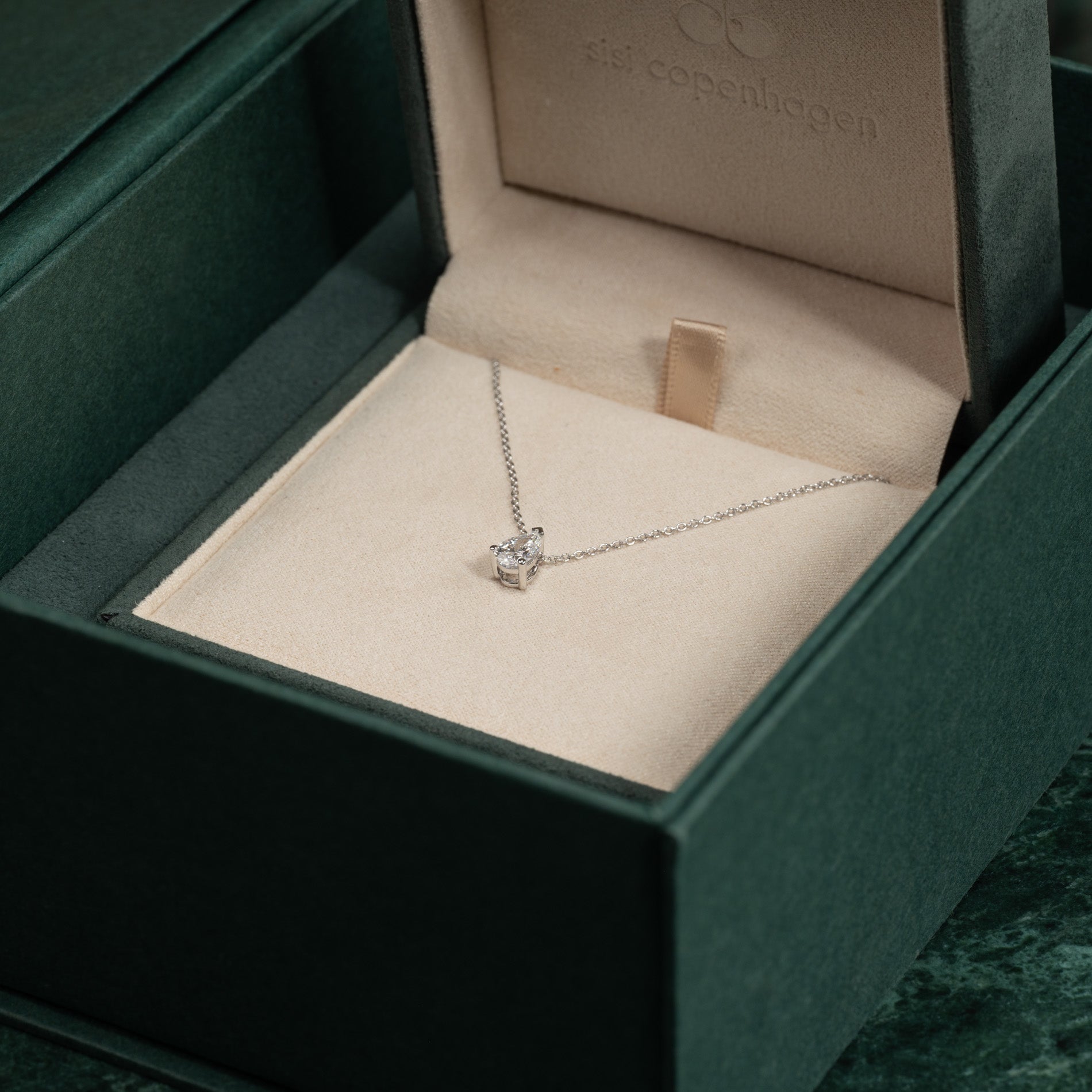 Solitaire drop pendant in 14 kt. white gold with a 0.65 ct. lab-grown diamond