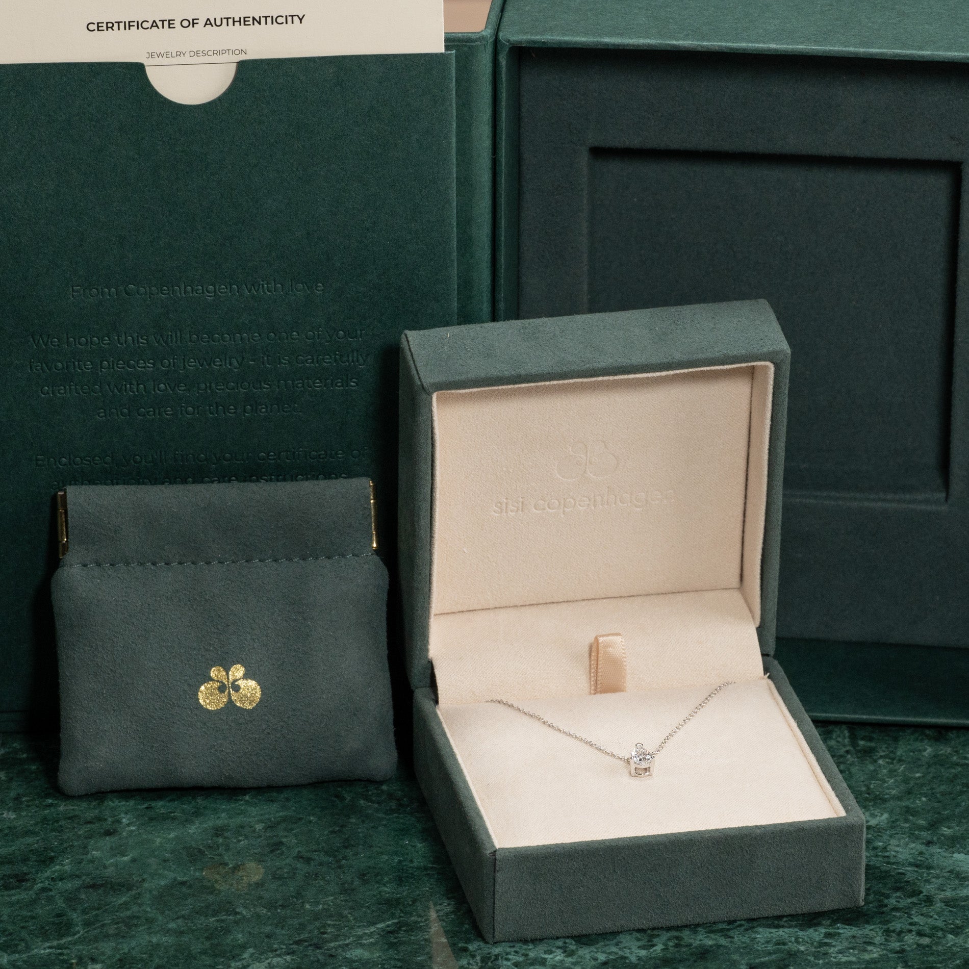 The jewelry comes in our exclusive Diamond Collection box with a beautiful jewelry box, certificate and pouch. The box is also perfect if you want to give the jewelry as a gift.