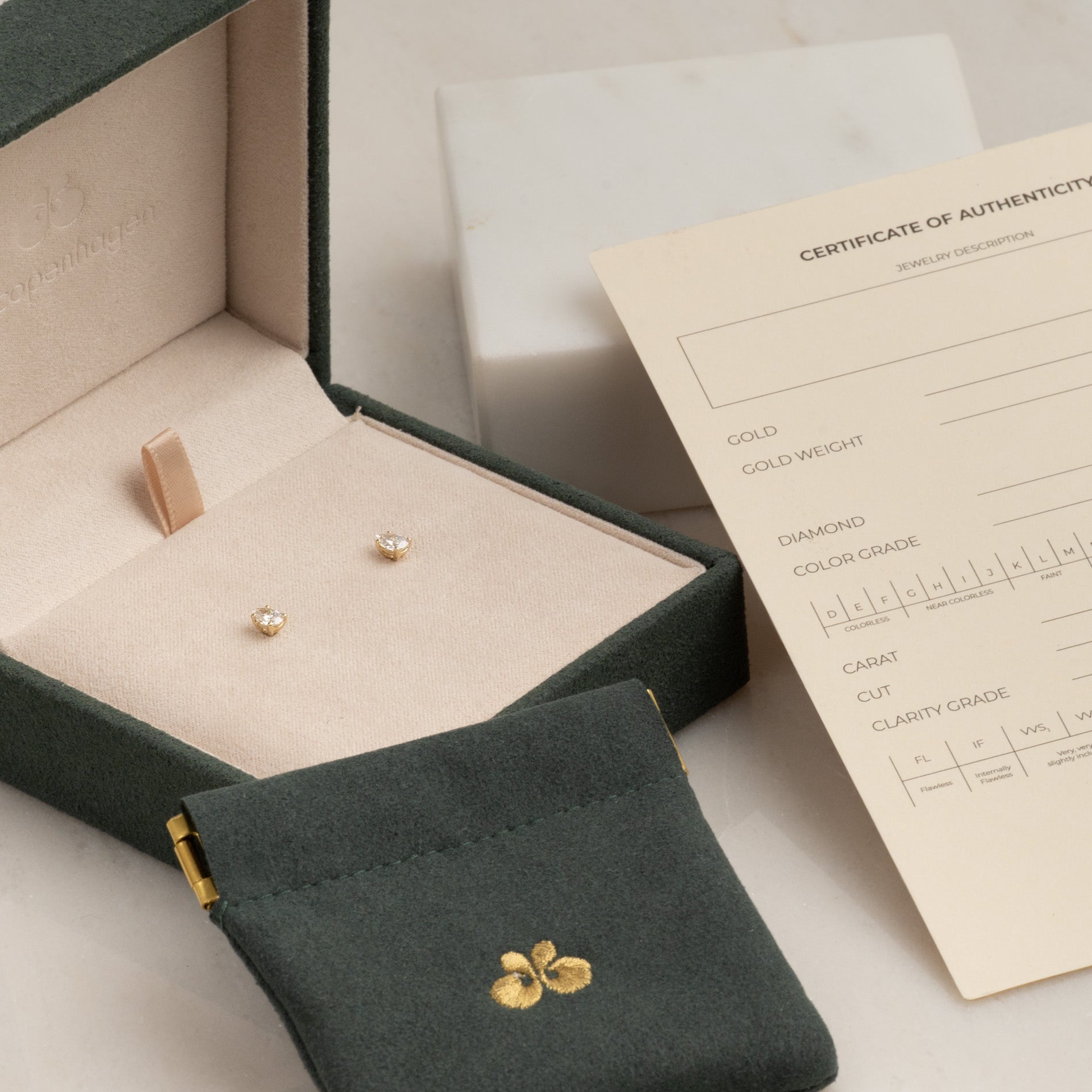 Our Diamond Collection jewelry comes in our exclusive Diamond Collection box, which includes a beautiful jewelry case, certificate, and pouch. The box is also perfect if the jewelry is intended as a gift.