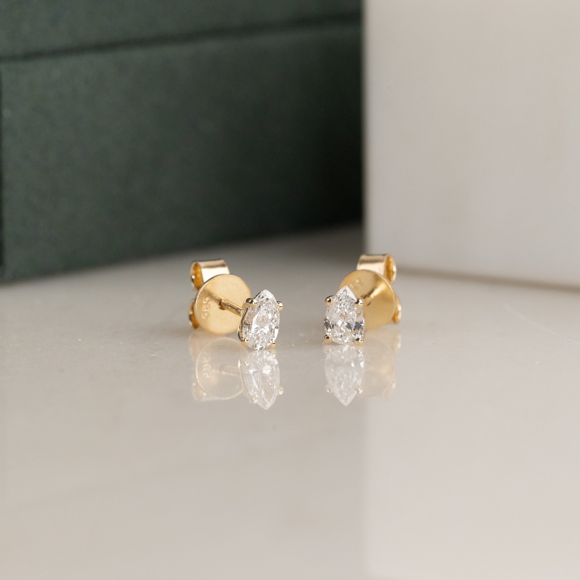 Stud earrings in 14kt gold with 0.5ct. teardrop-shaped lab-grown diamonds