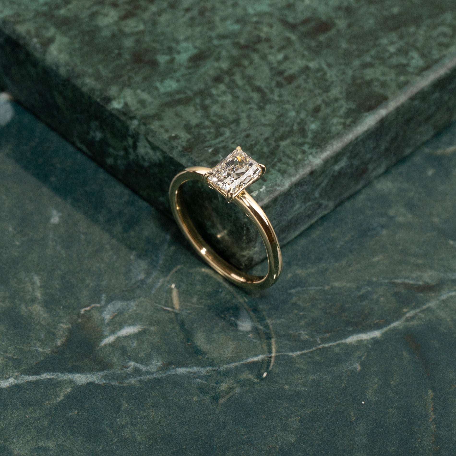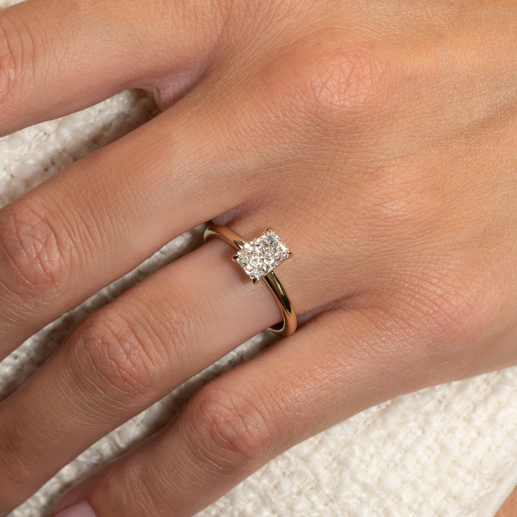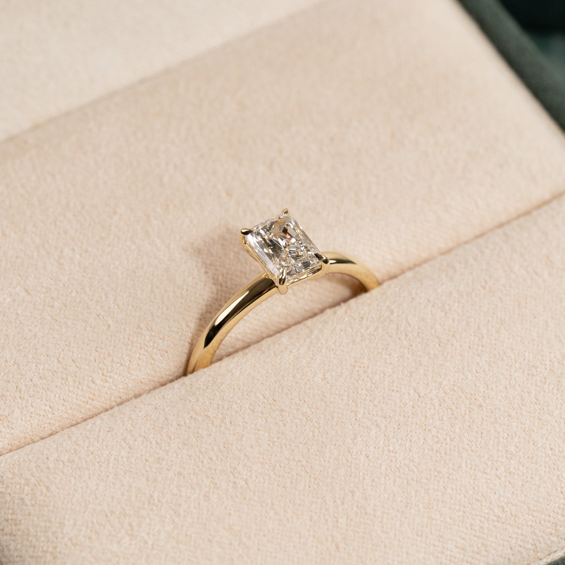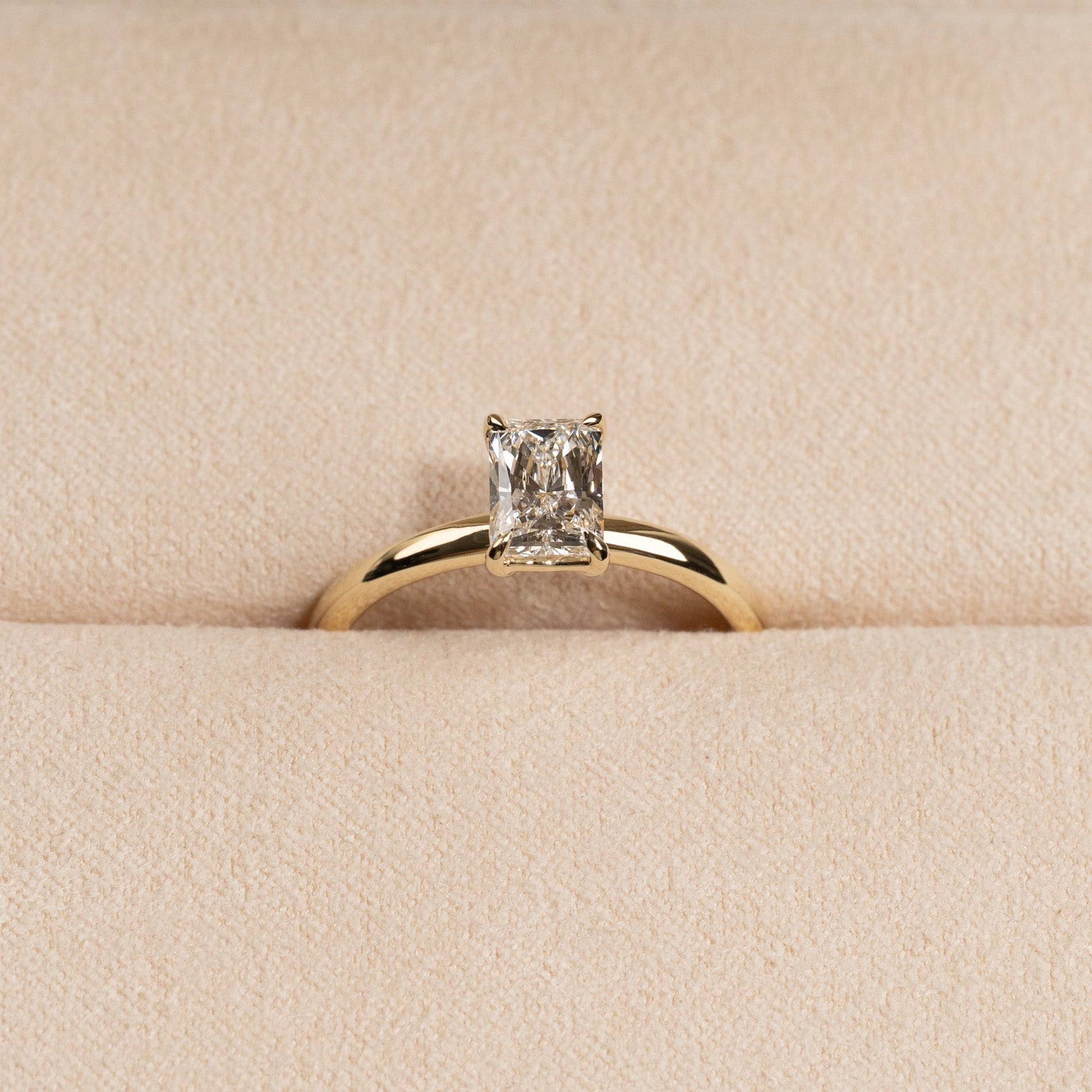 Ring in 14-karat solid gold with a 1.0 ct. radiant-cut lab-grown diamond.