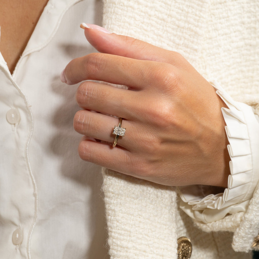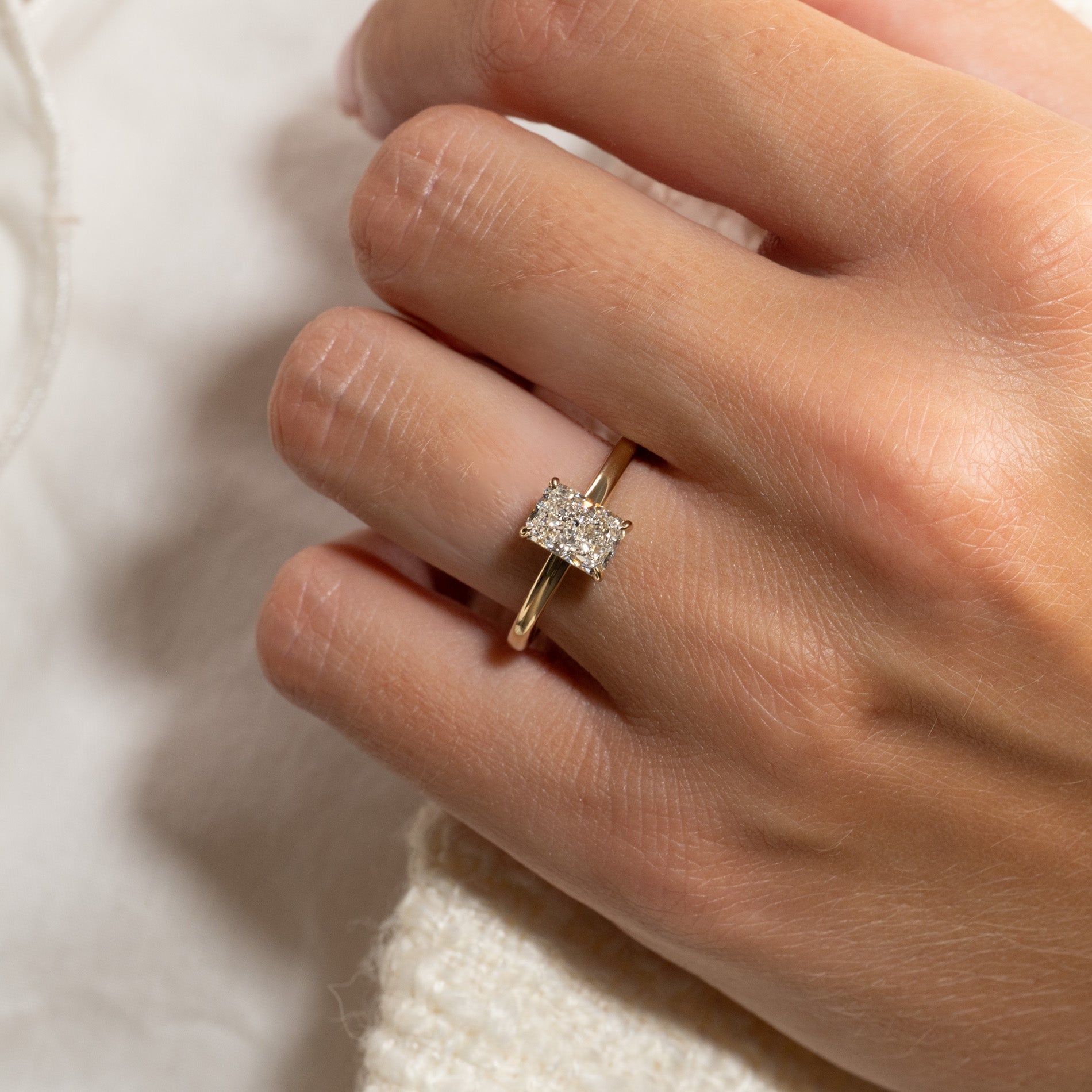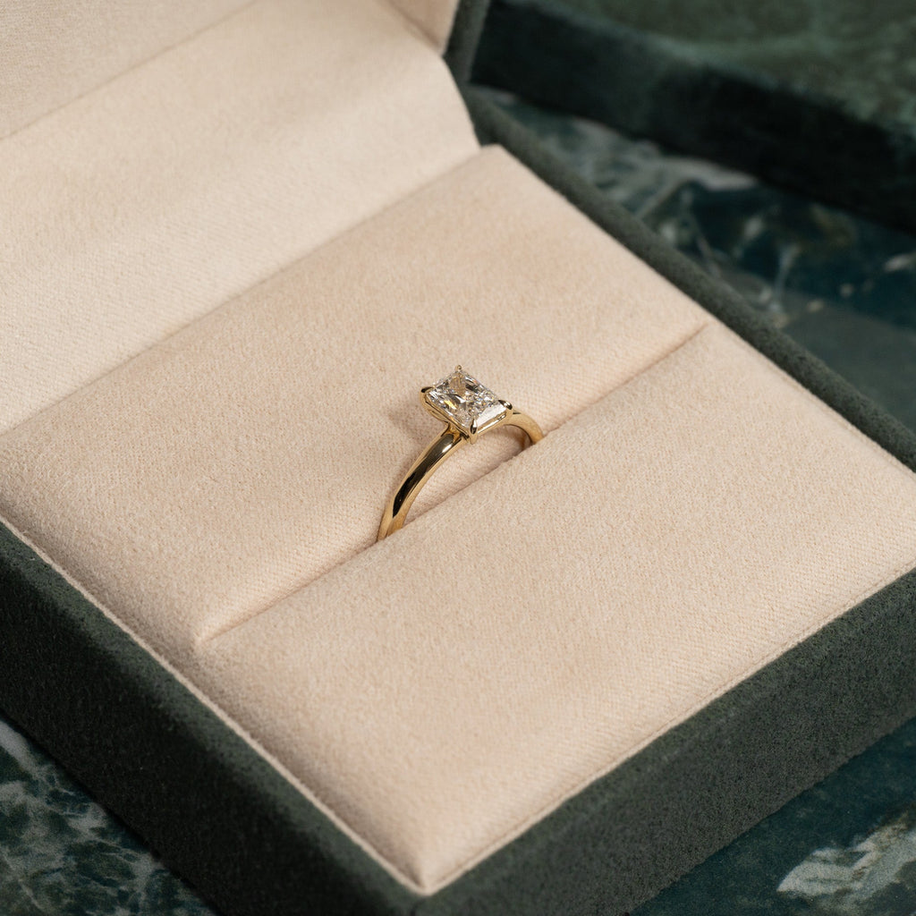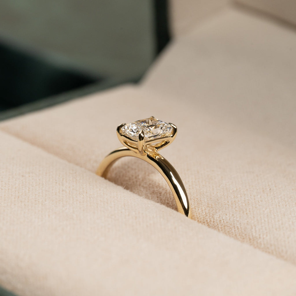 Ring in 14-karat solid gold with a 1.0 ct. radiant-cut lab-grown diamond.