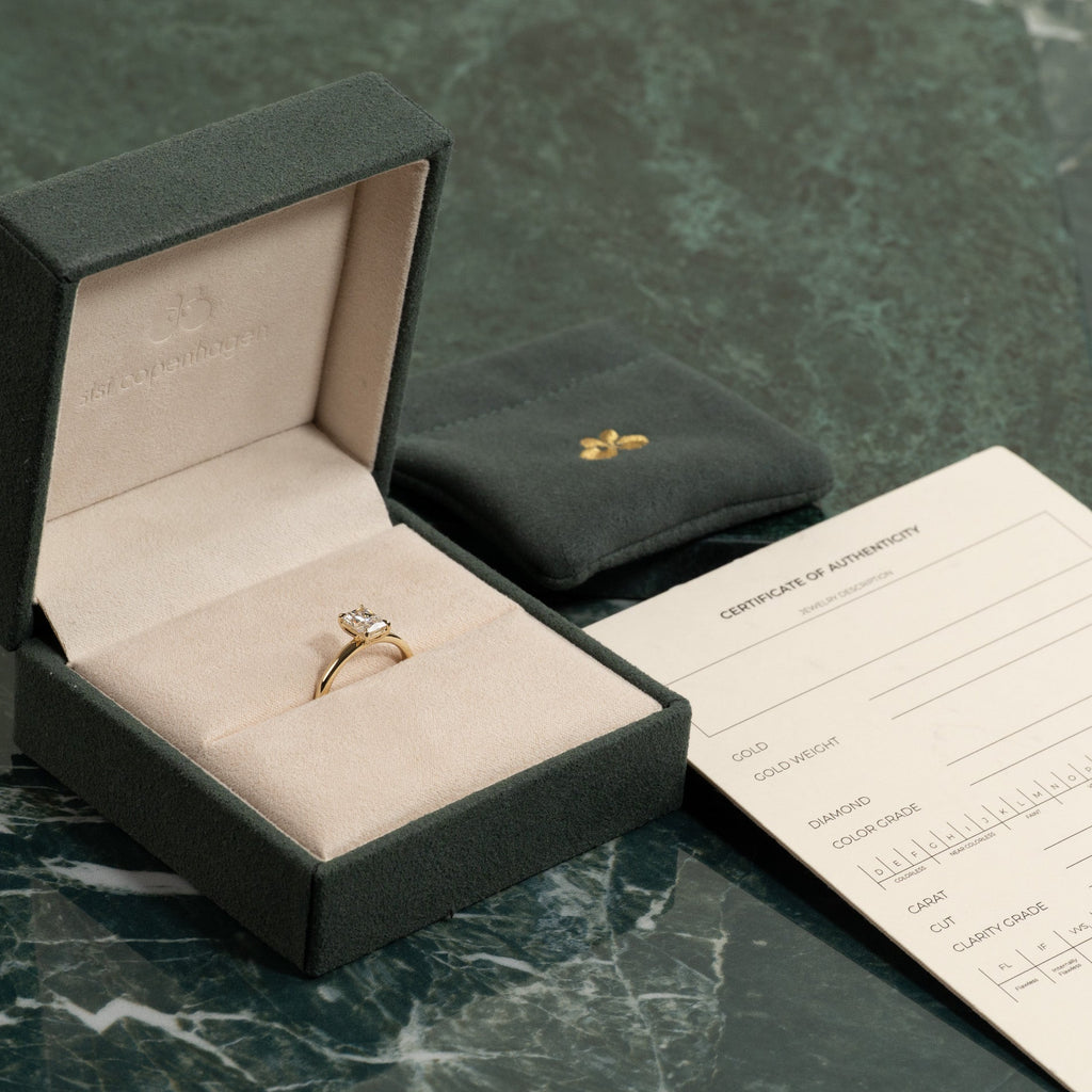 We offer a thoughtful solution: you’ll receive a beautifully wrapped gift box, without the jewelry, but with a card inside that lets the recipient know what they can look forward to. As soon as the piece is ready, it will be delivered in our signature jewelry box along with its certificate. This way, you can still give an unforgettable gift - even if the jewelry isn’t ready just yet.
