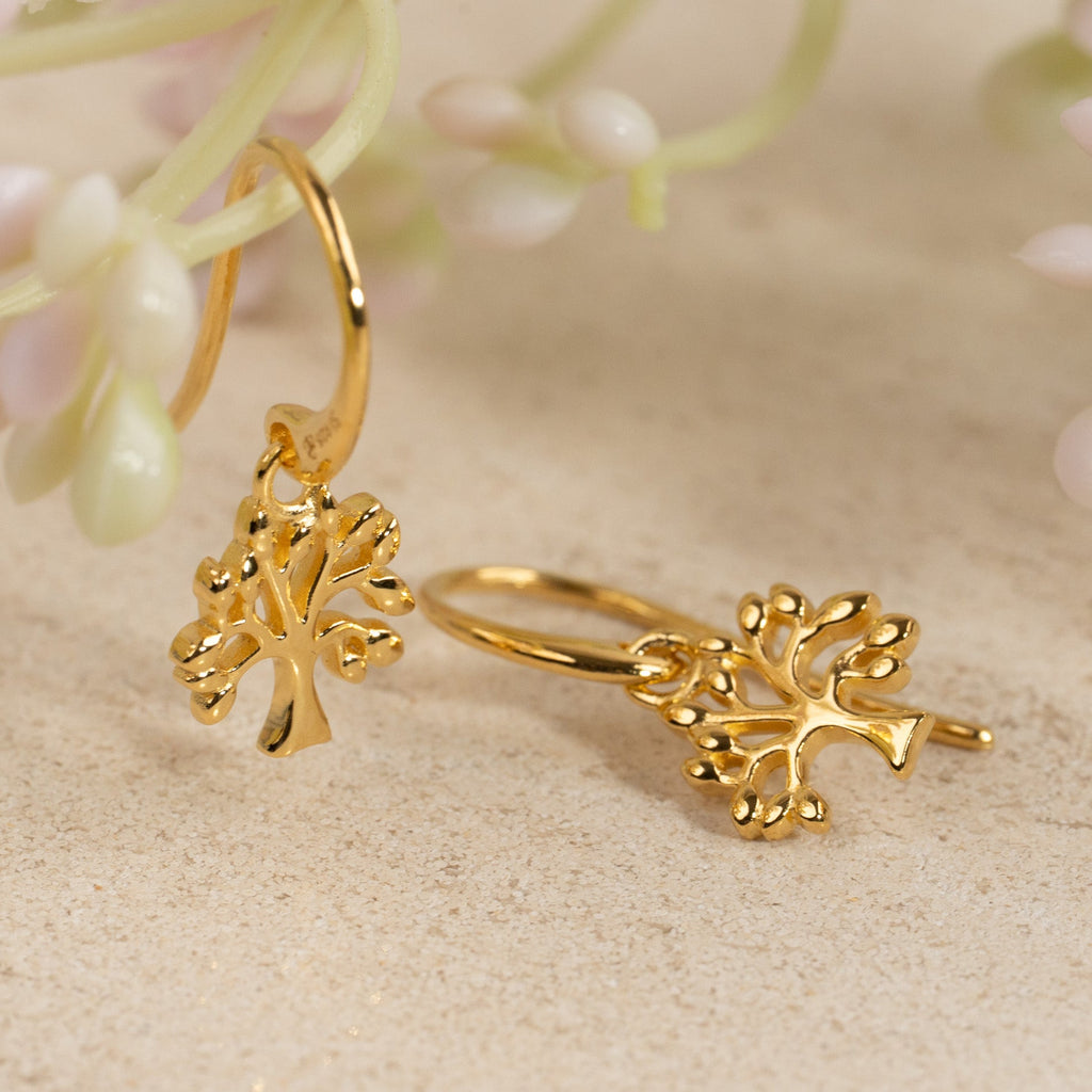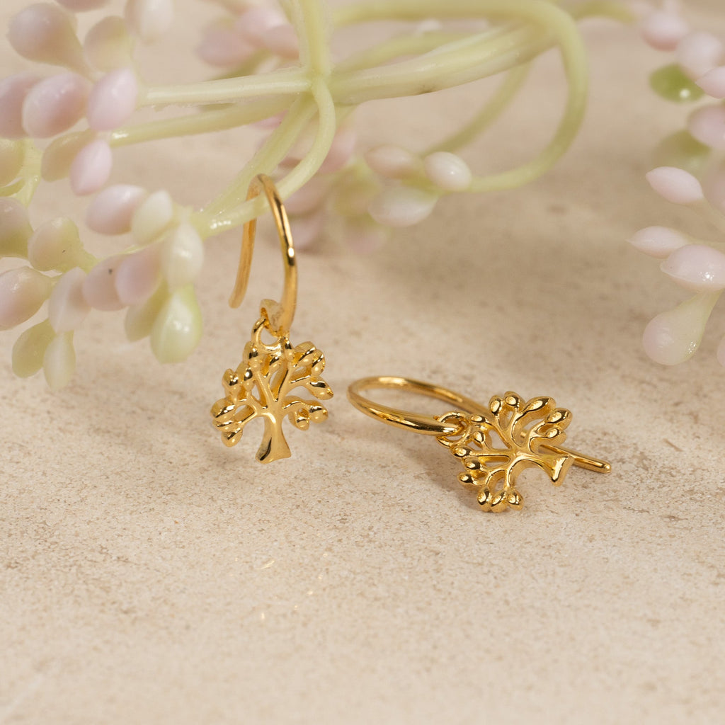 Earrings made from 100% recycled gold-plated 925 sterling silver with a Tree of Life design.