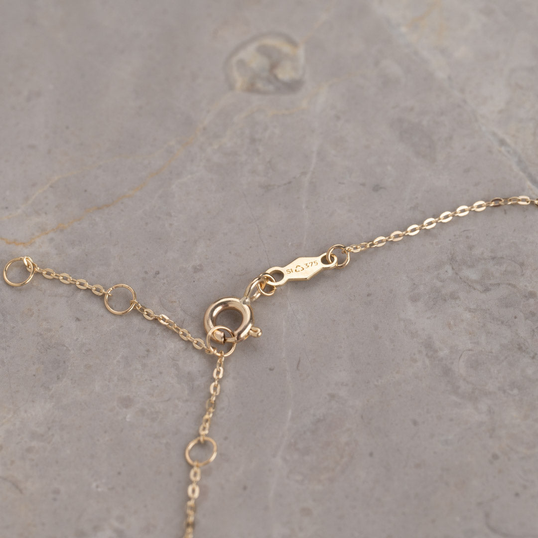 - With 9 kt solid gold, you get an extremely durable piece of jewelry that is both waterproof and retains its gold luster for a lifetime.